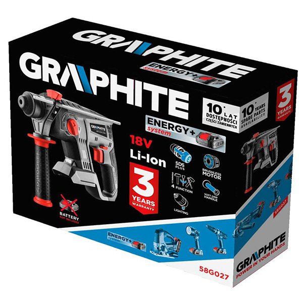 Ciocan rotopercutor SDS-plus compatibil cu acumulator 18V ENERGY+ GRAPHITE 58G027 HardWork ToolsRange