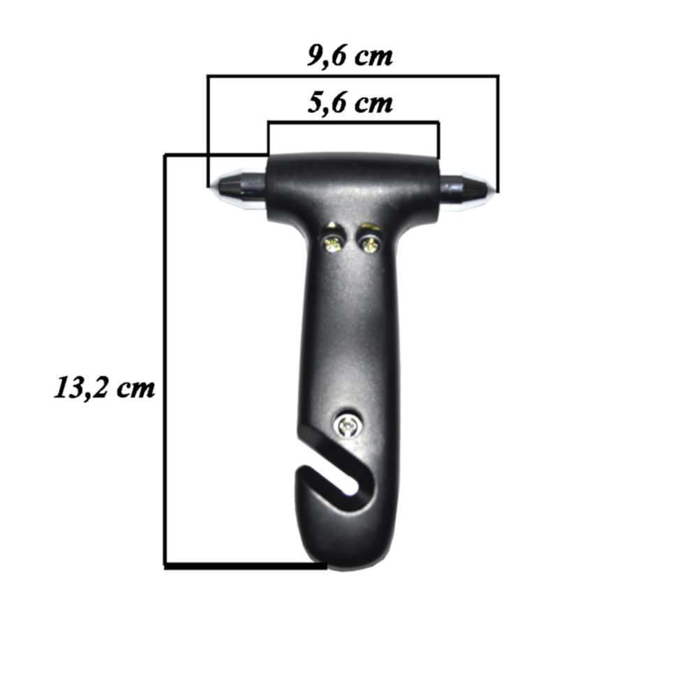 -fabricata din metal cu cap dublu pentru spart geamul si o lama foarte ascutita pentru a taia cu usurinta centura de siguranta