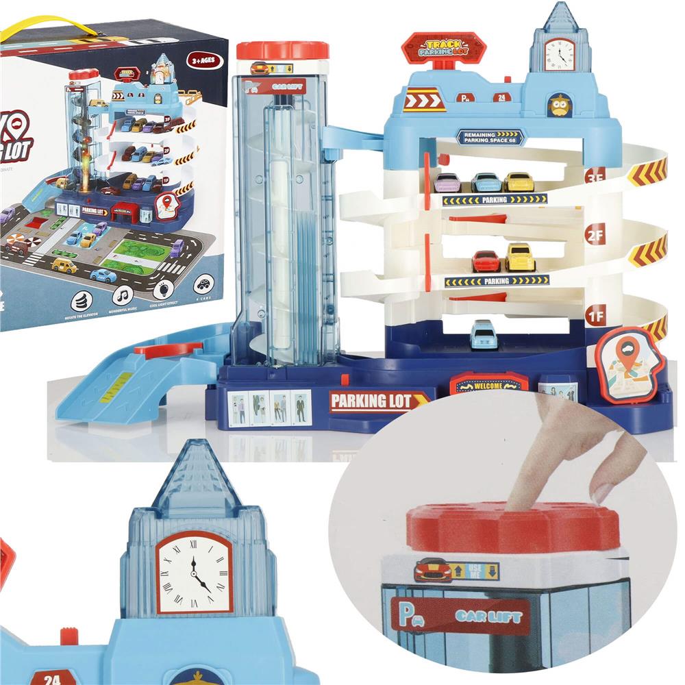 Material: plastic Culoare: bleumarin, alb, albastru, rosu, albastru transparent Inaltime totala 32 cm Latime 47 cm Adancime 27 cm Parcarea va va permite sa va creati amintiri noi, minunate alaturi de cei dragi. Asamblati structurile impreuna, operati liftul automat si jucati-va cu masinile de jucarie. Petrece timp creativ si plin de bucurie cu copilul tau! Distractie care are un mare impact asupra dezvoltarii copilului Construirea unei piste stimuleaza imaginatia Lift automat in spirala - va aduce si mai multa distractie Cadoul perfect pentru viitoarea zi de Sf. Nicolae Implicati intreaga familie in distractie! Ambalaje decorative din carton Un vis devenit realitate pentru tinerii fani ai automobilelor Masini de jucarie incluse Efecte vizuale si sonore Parcarea noastra este foarte distractiva nu numai pentru copii, ci si pentru adulti! Copiii nu trebuie sa se joace doar cu semenii lor, ci pot invita persoanele in varsta sa se joace – in special parintii lor. Ei vor experimenta multa placere participand la mitingurile ulterioare cu copiii lor si urmarindu-si copiii cum se dezvolta prin joaca! inaltime totala 32 cm, latime 4 cm, adancime 27 cm 4x nivele, 2x rafturi parcare, ascensor spiralat automat pentru vehicule acoperit cu material transparent. 1 x parte principala a parcarii, are 3 etaje si un lift in spirala care ridica vehiculele pana la ultimul etaj. Liftul este sigur pentru copii, acoperit cu material acrilic transparent si va permite sa urmariti progresul vehiculului. Liftul poate fi ridicat si manual folosind butonul din partea de sus. (alimentat de 2 x baterii AA) - comutator independent 1 x acoperis cu o cupola transparenta cu lumina albastra si efecte sonore (alimentat cu 2 x baterii AA) - comutator independent 6 x vehicul (5 cm x 2 cm) 1 x arc exterior de cale (16 cm x 7 cm) 2x rafturi (latime: 14,5 cm x 14,5 cm) 3 x garduri balustrada 11 cm semne de 3 x 6 cm 1 x set de autocolante pentru atasarea la elementele garajului (45 de autocolante) 1 x lungime de cale (lungime: 12 cm) 1 x covoras de parcare din hartie (58 cm x 28 cm) 1 surubelnita pentru a desuruba capacul bateriei 1x manual de utilizare Set alimentare: 4 x AA; 1,5 V Bateriile sunt incluse in set Pe langa parcarea cu etaje, setul include si o tabla pliabila - covoras. Prezinta peisajul unei strazi pe care poti conduce masinile incluse. Pune indicatoare, organizeaza traficul, tu esti regele in parcarea ta! Si mai distractiv va fi faptul ca elevatorul in spirala inclus in set este automat. Stabiliti o bariera si decideti la ce nivel ar trebui sa mearga masina. Utilizarea unui lift automat asigura ore mai placute petrecute la joaca. Beneficiile pe care copiii le vor castiga din acest joc sunt: Sa-si dezvolte imaginatia spatiala si abilitatile de gestionare a spatiului Ii ajuta sa-si dezvolte abilitatile motorii, in special cele manuale Stimuleaza creativitatea si bucuria derivate din creativitate Setul include 6 arcuri, care au fost realizate cu precizie si atentie la fiecare detaliu, astfel incat arata ca niste copii mici ale vehiculelor reale. Fiecare masina este unica si imita perfect omologul sau real in forma si motor.