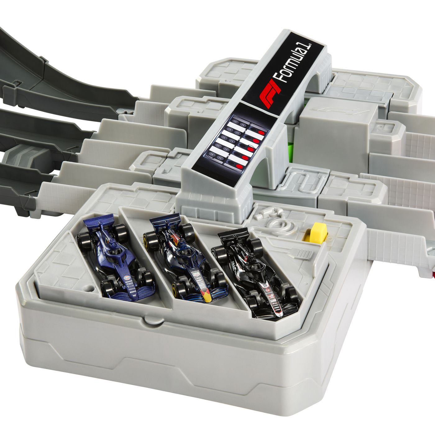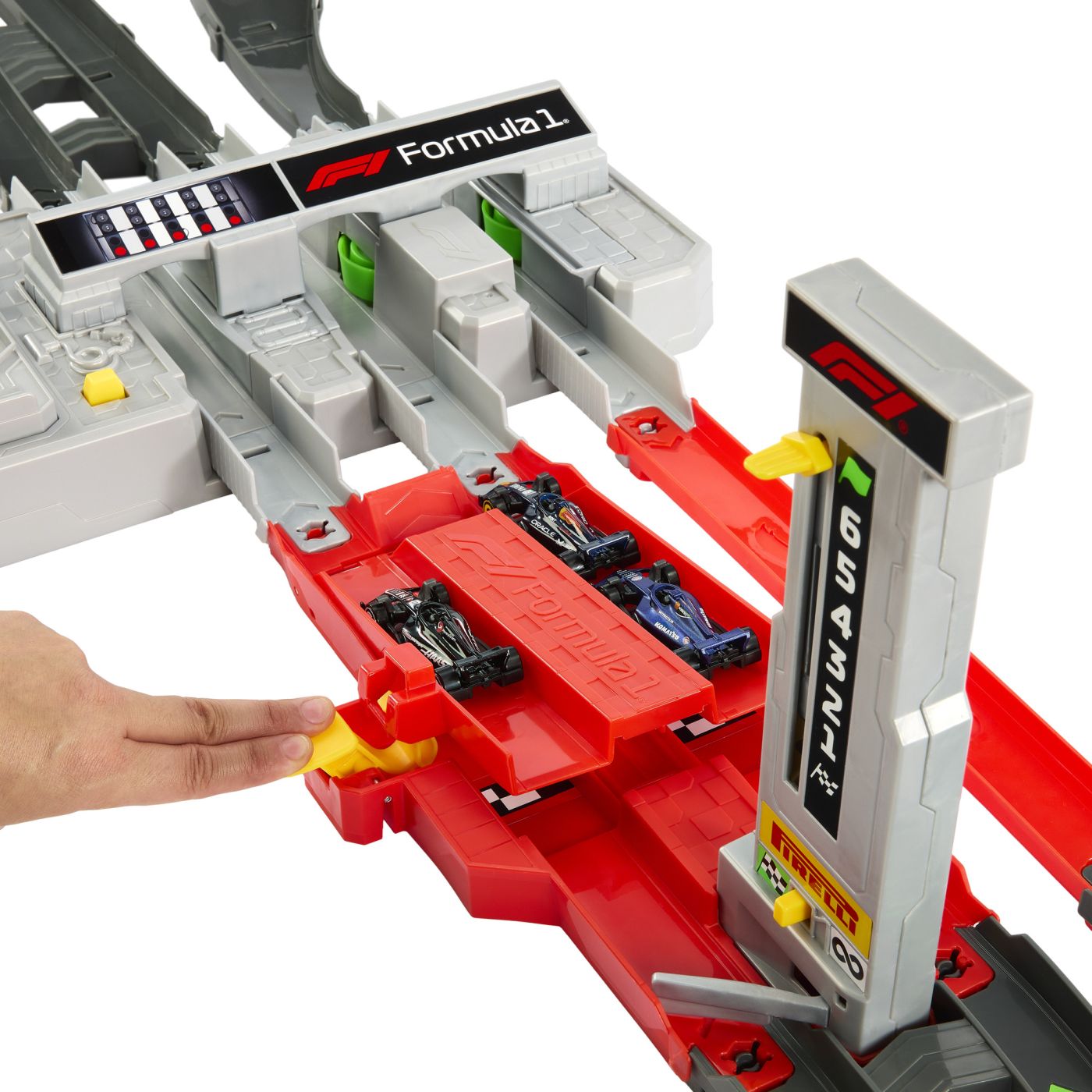 - include mașinuțe inspirate din universul Formula 1