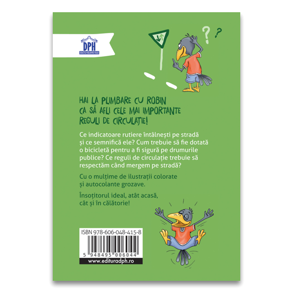 Circulăm în siguranță cu Robin este o carte educativă pentru copii care îi ajută pe cei mici să descopere, într-un mod distractiv, cele mai importante reguli de circulație. Prin activități interactive, ilustrații colorate și autocolante, copiii învață să recunoască indicatoarele rutiere, să înțeleagă semnificația lor și să afle cum pot circula mai sigur pe stradă sau cu bicicleta.