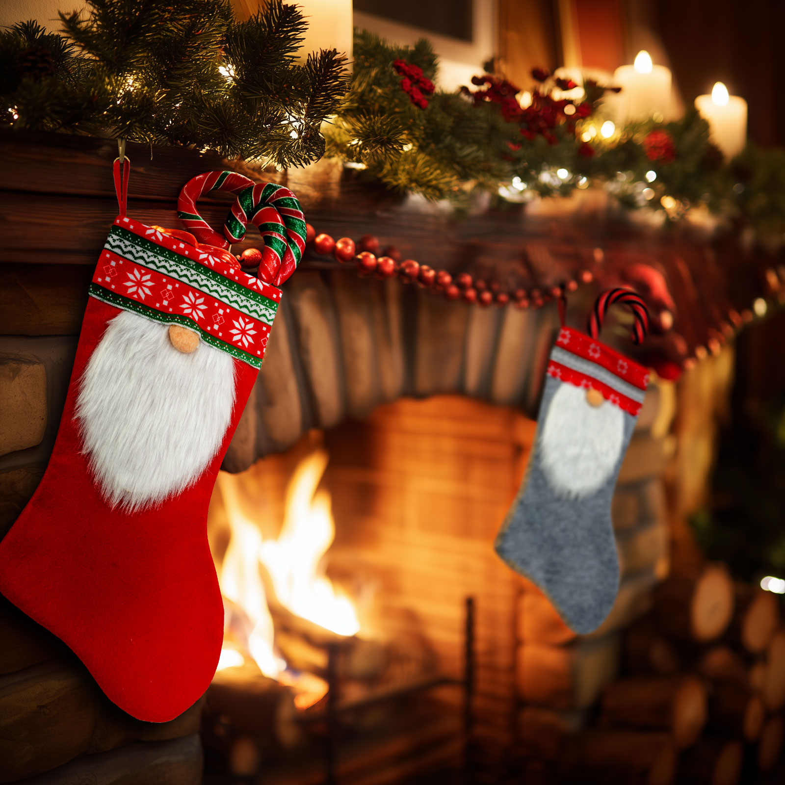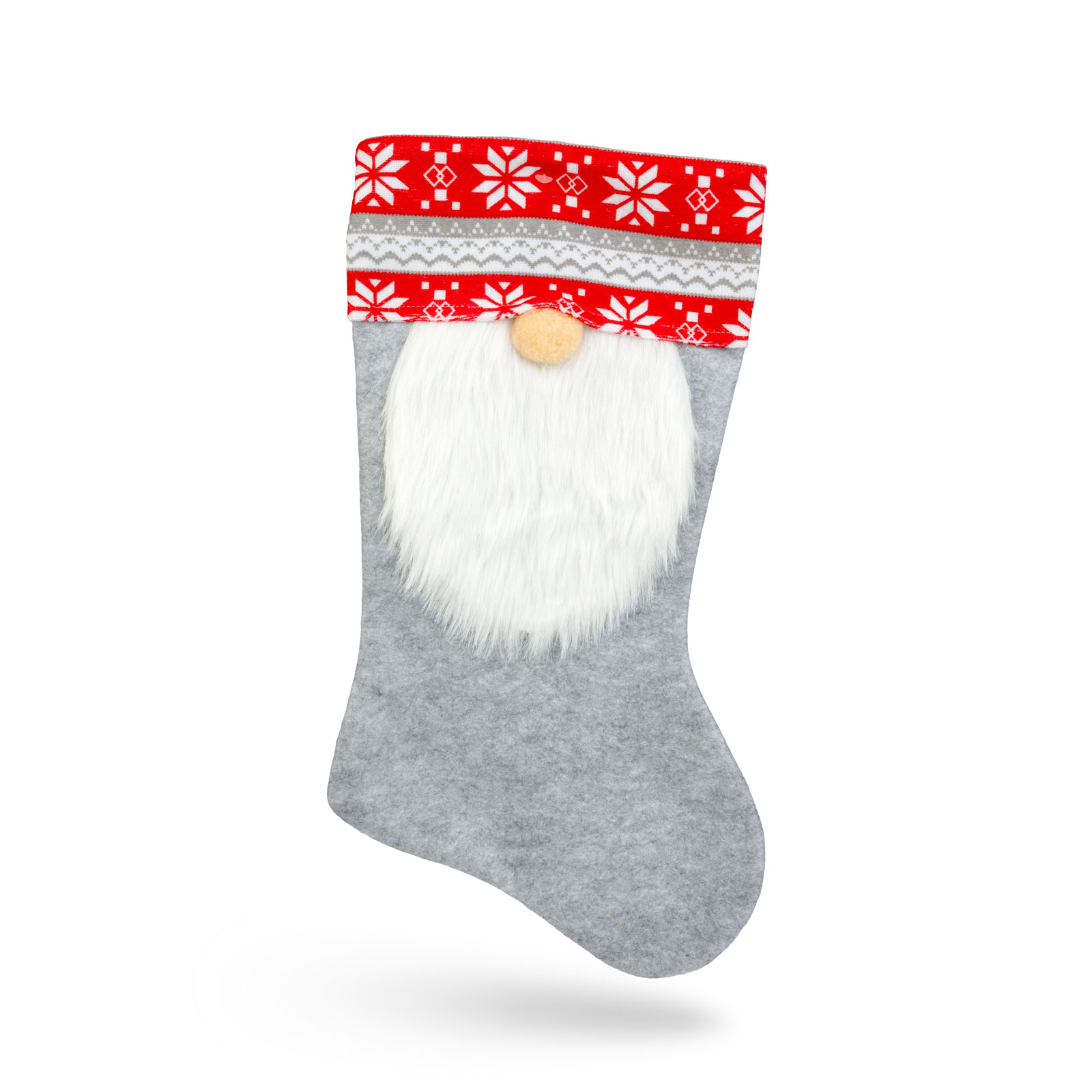 Designul unic, cu figurine de spiriduș prevăzute cu barbă pufoasă și detalii fine, creează o atmosferă caldă și jucăușă în orice încăpere. Poate fi agățată cu ușurință de șemineu, perete sau ușă datorită buclei integrate și este perfectă pentru a ascunde dulciuri, mici cadouri sau decorațiuni festive.