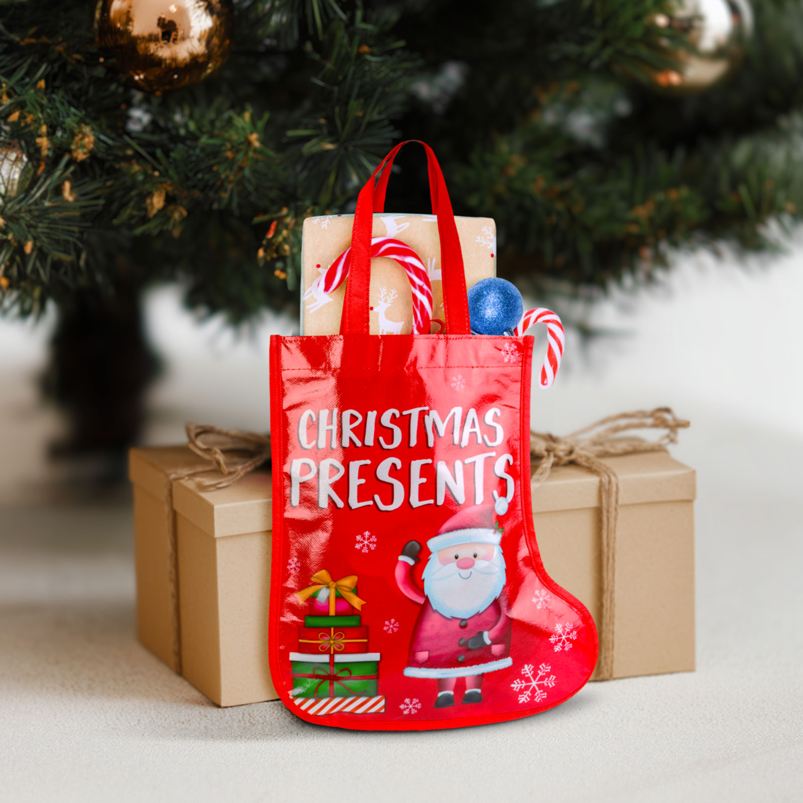 Această cizmă decorativă roșie, realizată din PVC rezistent, este un accesoriu ideal pentru completarea atmosferei festive din locuință. Cu un design vesel, decorat cu figura lui Moșul, aduce o notă jucăușă și caldă oricărui colț de casă.