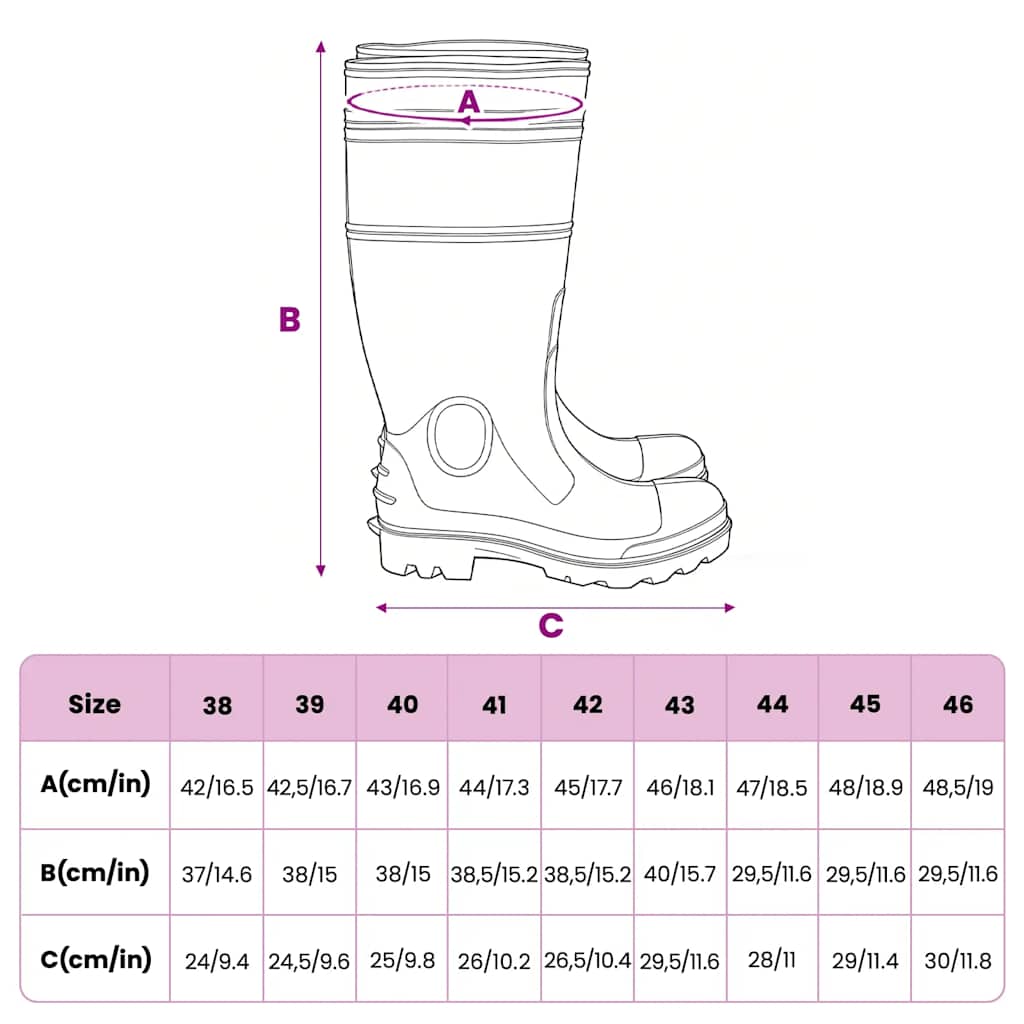 - Cizmele de ploaie nu sunt potrivite pentru lucru sau pentru utilizare pe suprafețe și obiecte ascuțite.