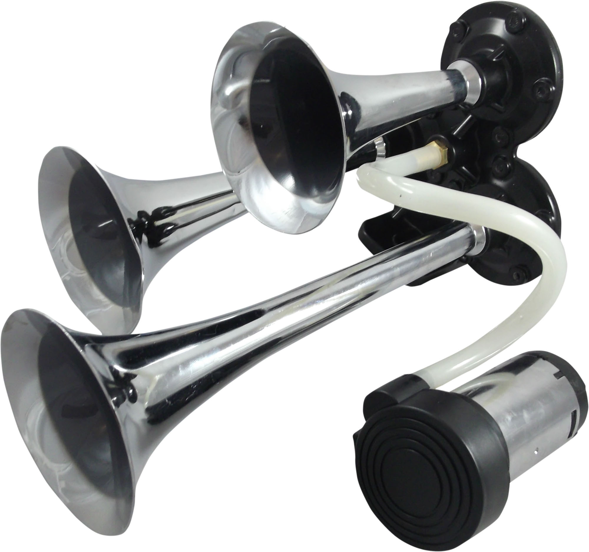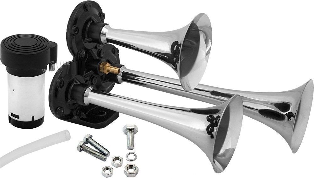 Claxon auto BestAutoVest 12v, 300 + 230 + 170 mm, set 3 trompete, crom cu compresor AutoDrive ProParts