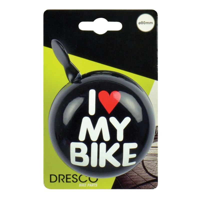 Claxon bicicleta I Love My Bike negru 80 mm, sonerie metalica