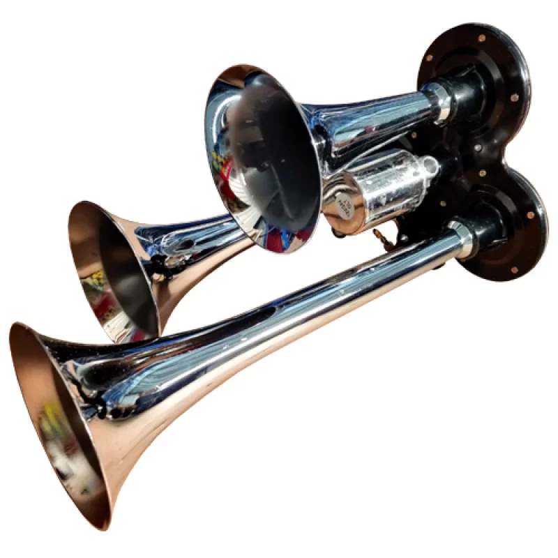 Descriere Claxon electropneumatic 3 goarne cromate, 12/24V,