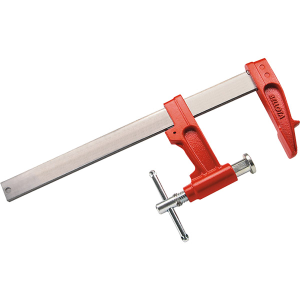 - Clema profesionala de inalta calitate, probabil o clema tip bara sau F-clema, conceputa pentru sarcini solicitante care necesita strangere, fixare si blocare puternica a pieselor si profilelor.