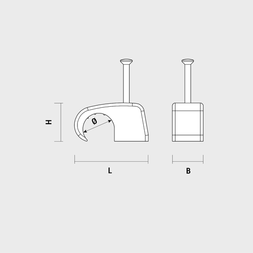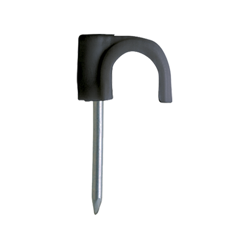 Utilizare: se pozitioneaza cablul in clema, apoi se fixeaza direct in suport prin baterea cuiului. Este ideala pentru organizarea si sustinerea cablurilor pe suprafete solide.