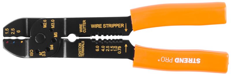 Clestele de dezizolat Strend Pro AWS 302 nu ar trebui sa lipseasca din trusa ta de scule. Este ideal pentru dezizolarea firelor si taierea cablurilor, iar in pachet primesti si o cutie cu 100 de conectori electrici (papuci), utila pentru lucrari rapide si ordonate.
