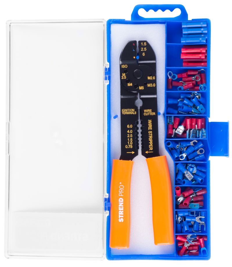 Cleste dezizolat cabluri Strend Pro AWS 302 + set 100 conectori