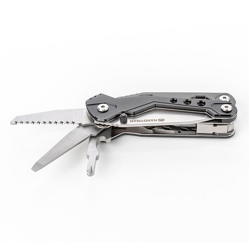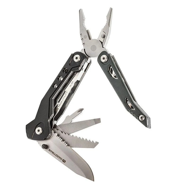 Fii pregătit pentru orice reparație cu cleștele multifuncțional 18 în 1 Handyone – o unealtă pliabilă compactă, ideală pentru casă, mașină, camping sau trusa de scule. Construcția din oțel inoxidabil și mânerul ergonomic din aluminiu eloxat oferă o prindere sigură și o utilizare confortabilă, iar husa de protecție cu prindere la curea îl face ușor de transportat.