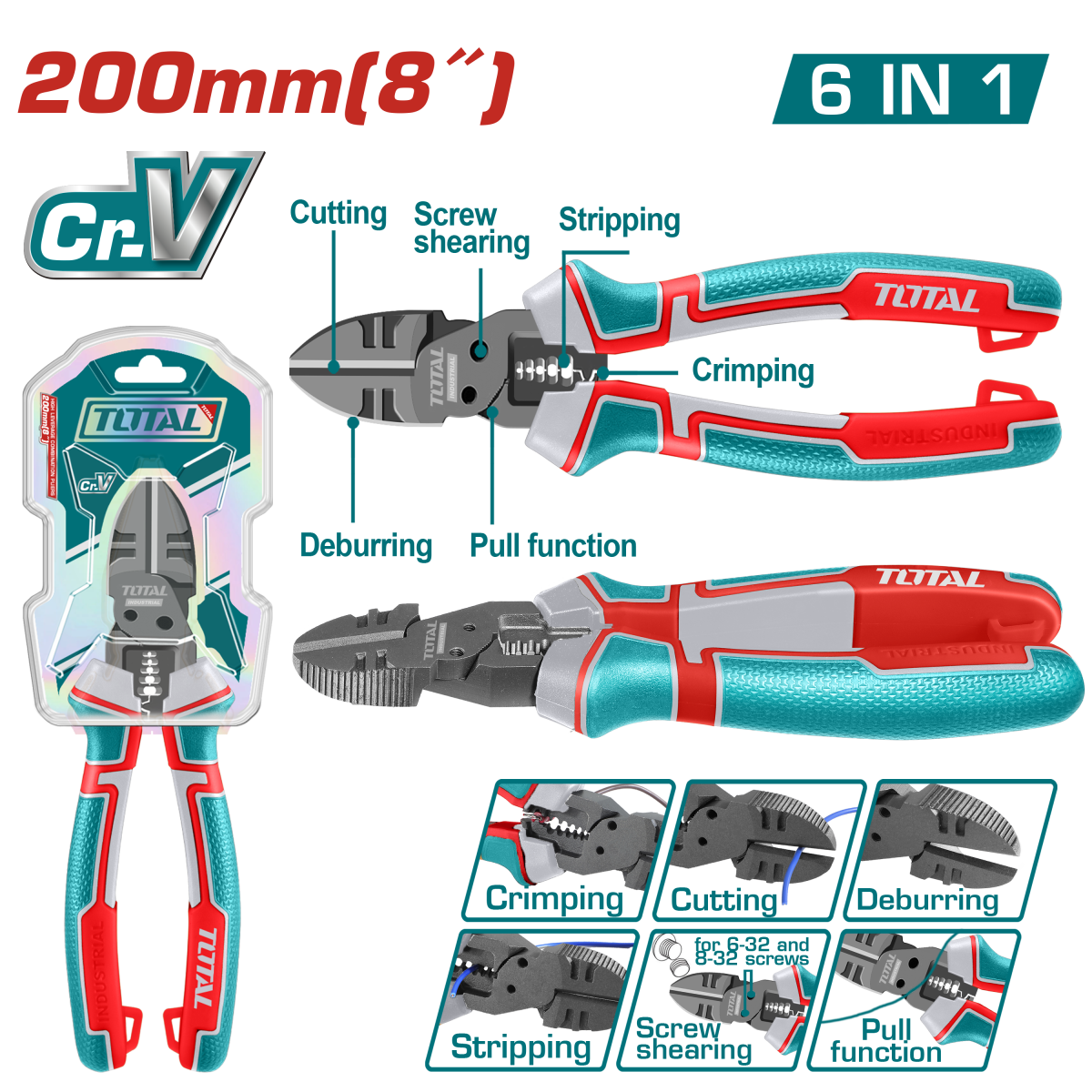 Clește multifuncțional TOTAL 6 în 1 industrial, 200 mm, oțel Cr-V, teflon