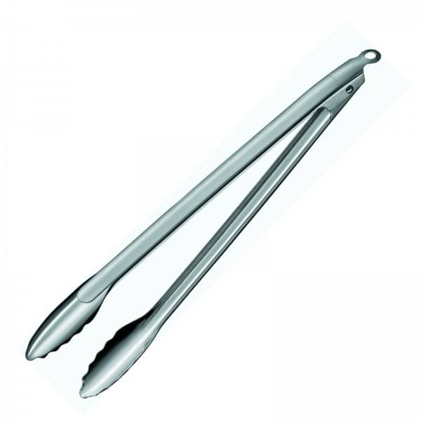 Cleștele pentru grătar cu mecanismul de cuplare patentat poate fi deschis și blocat cu o singură mână. Manipularea sigură și confortabilă este asigurată prin designul ergonomic al cleștelui. Spațiu de economisire în poziție blocată. Se poate spăla în mașina de spălat vase în condiții de siguranță. Caracteristici:- Dimensiuni produs: 43 x 4 x 3,2 cm (L x l x h)