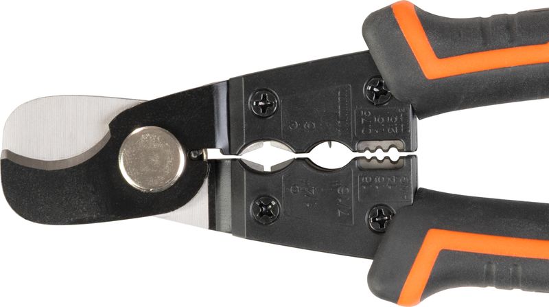Clestele Strend Pro este o unealta universala, potrivita pentru lucrari cu cabluri electrice, lita si sarma. Datorita falcilor ascutite, ofera taiere precisa si rapida, iar functia de sertizare (crimp) te ajuta la montarea conectorilor si la reparatii sau ajustari de cabluri.