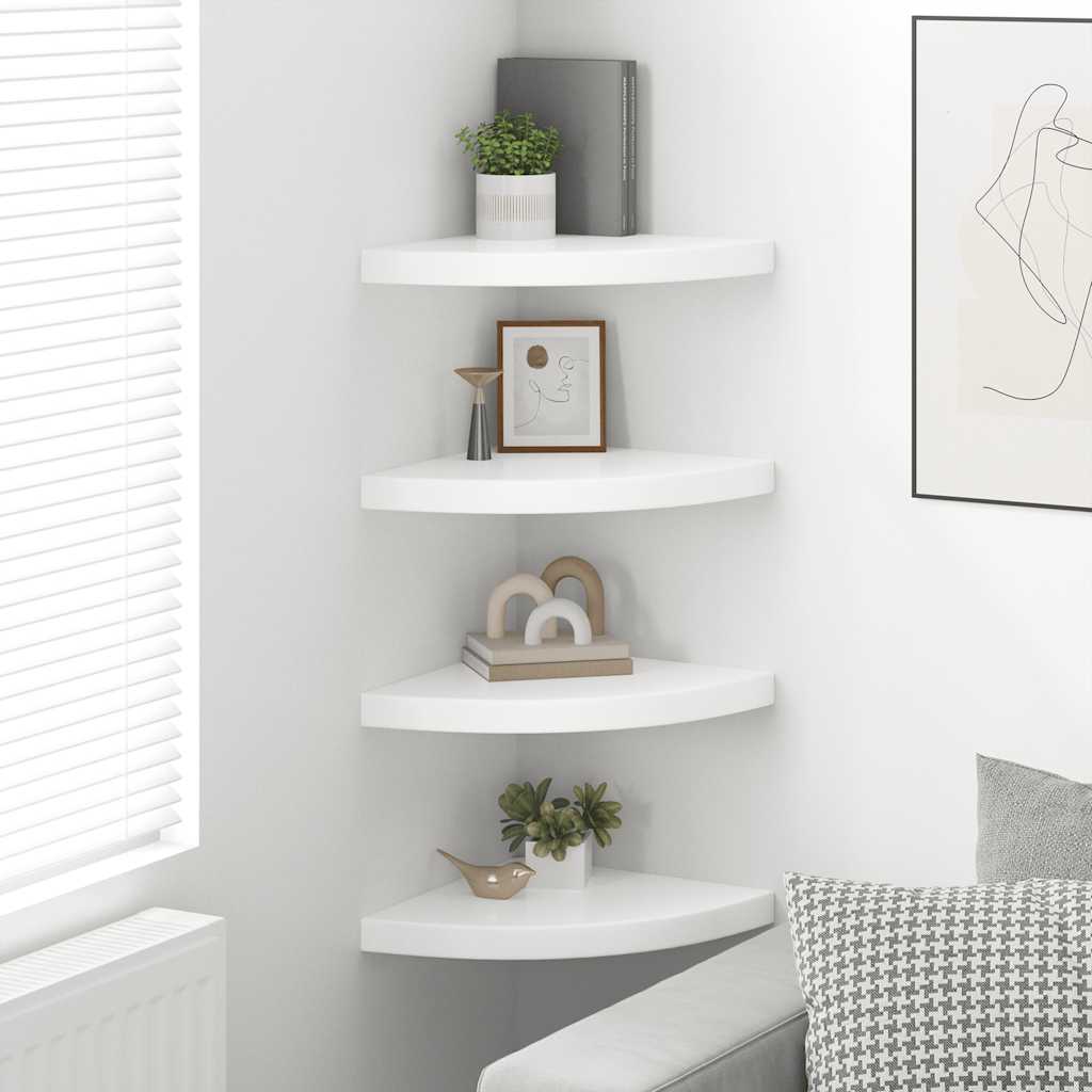 Colțare suspendate, 4 buc., alb extralucios, 35x35x3,8 cm, MDF GartenMobel Dekor