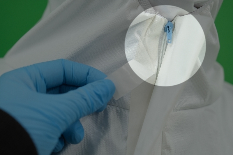 Descriere Combinezon alb Bumbac Polietilena gluga, inchidere