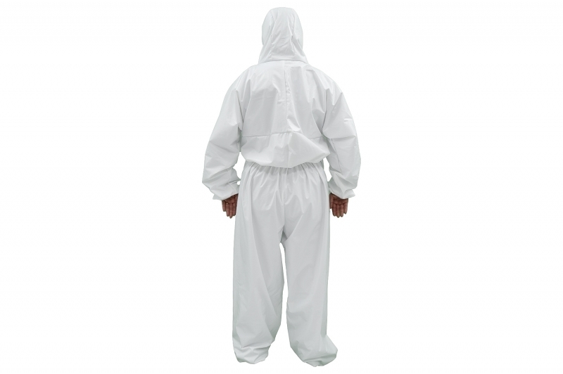 Combinezon alb din Bumbac si Polietilena cu gluga, inchidere cu fermoar, mansete elastice, marimea L, impermeabil, lavabil