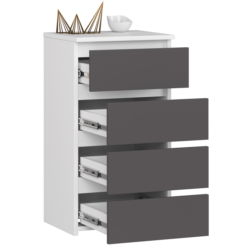 Comodă îngustă cu 4 sertare, PAL laminat 16 mm, alb și gri grafit