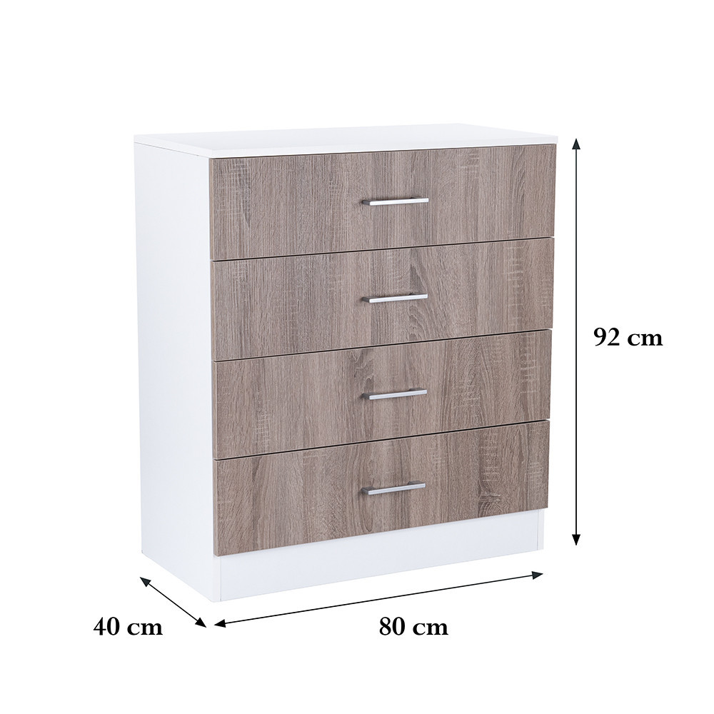 Comodă Leziter Miami cu 4 sertare, 80x92 cm, stejar York și alb