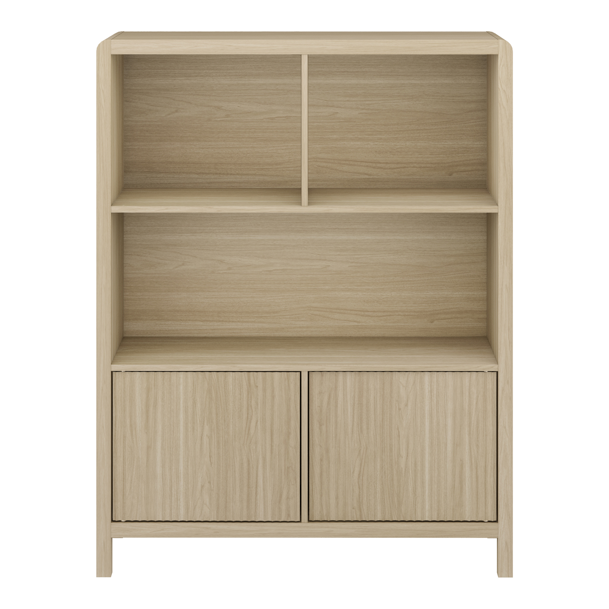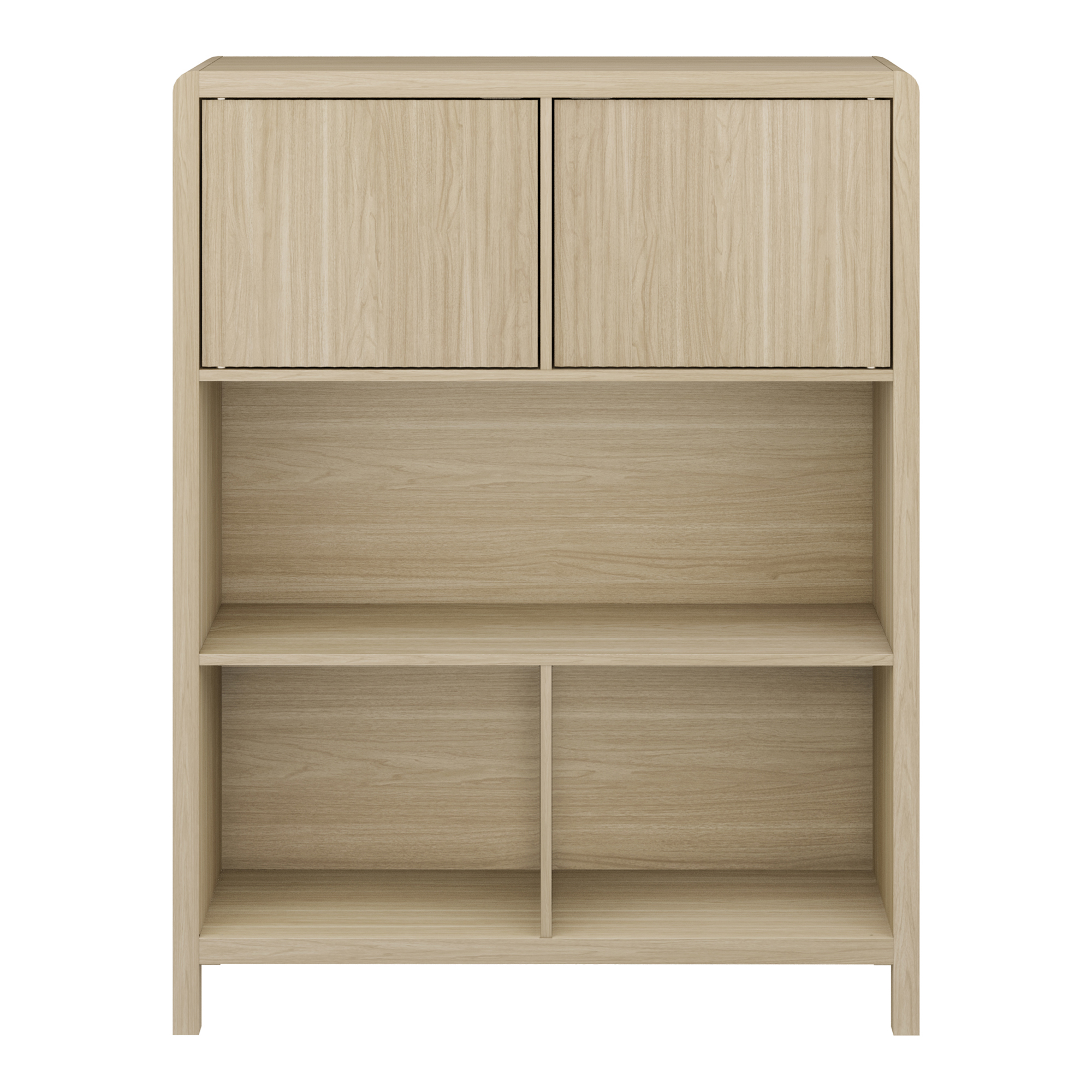 Dispune de patru compartimente mai mici și un compartiment mare deschis, ideale pentru cărți, decorațiuni, plante, accesorii sau alte obiecte utile din casă. Cele două uși pot fi montate flexibil pe compartimentele mici, astfel încât să alegi exact ce zone rămân deschise și ce zone rămân închise. Sistemul push-to-open permite deschiderea fără mânere, pentru un aspect modern și ordonat.