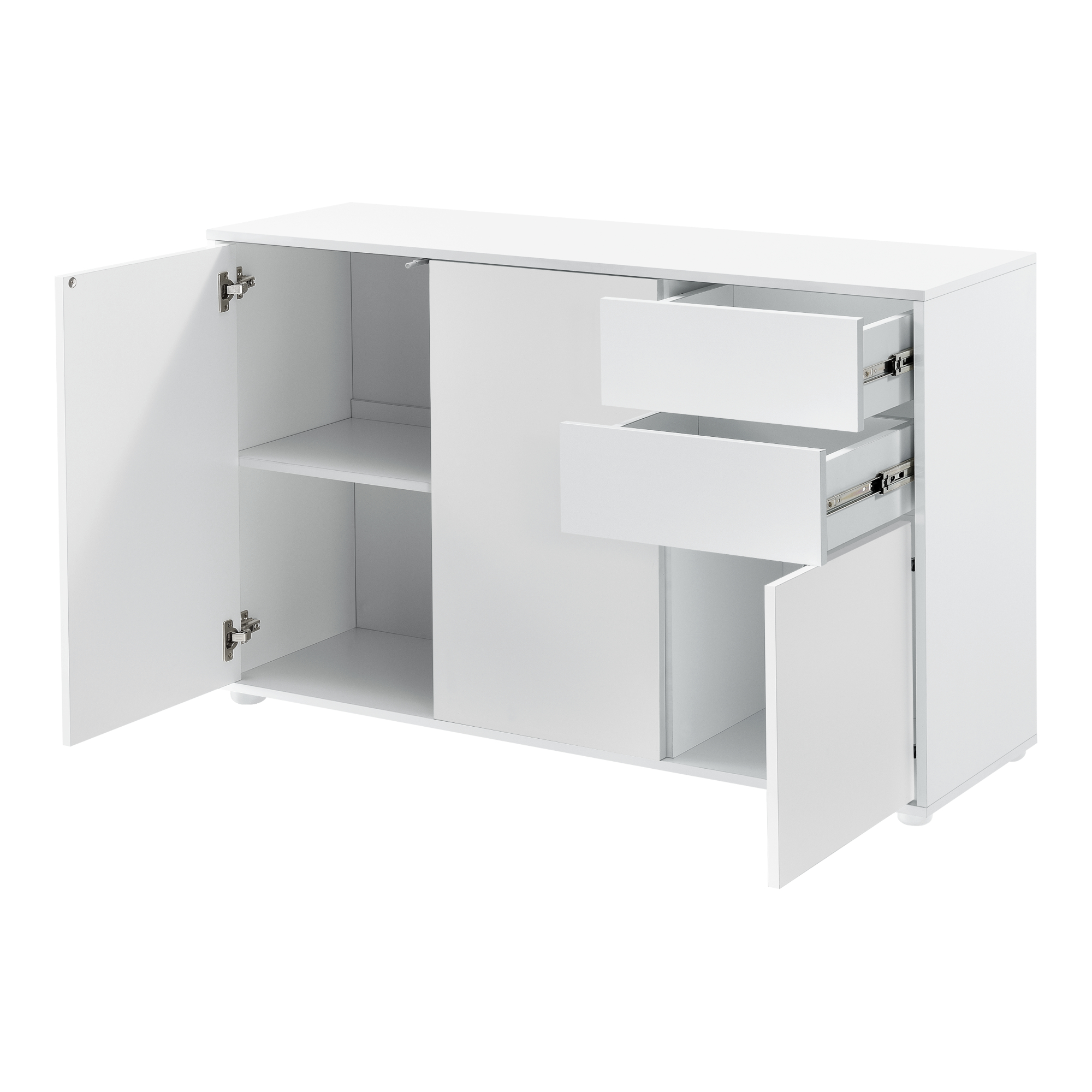 Comodă living Paarl 117x74x36 cm, 2 sertare și 3 uși, alb mat