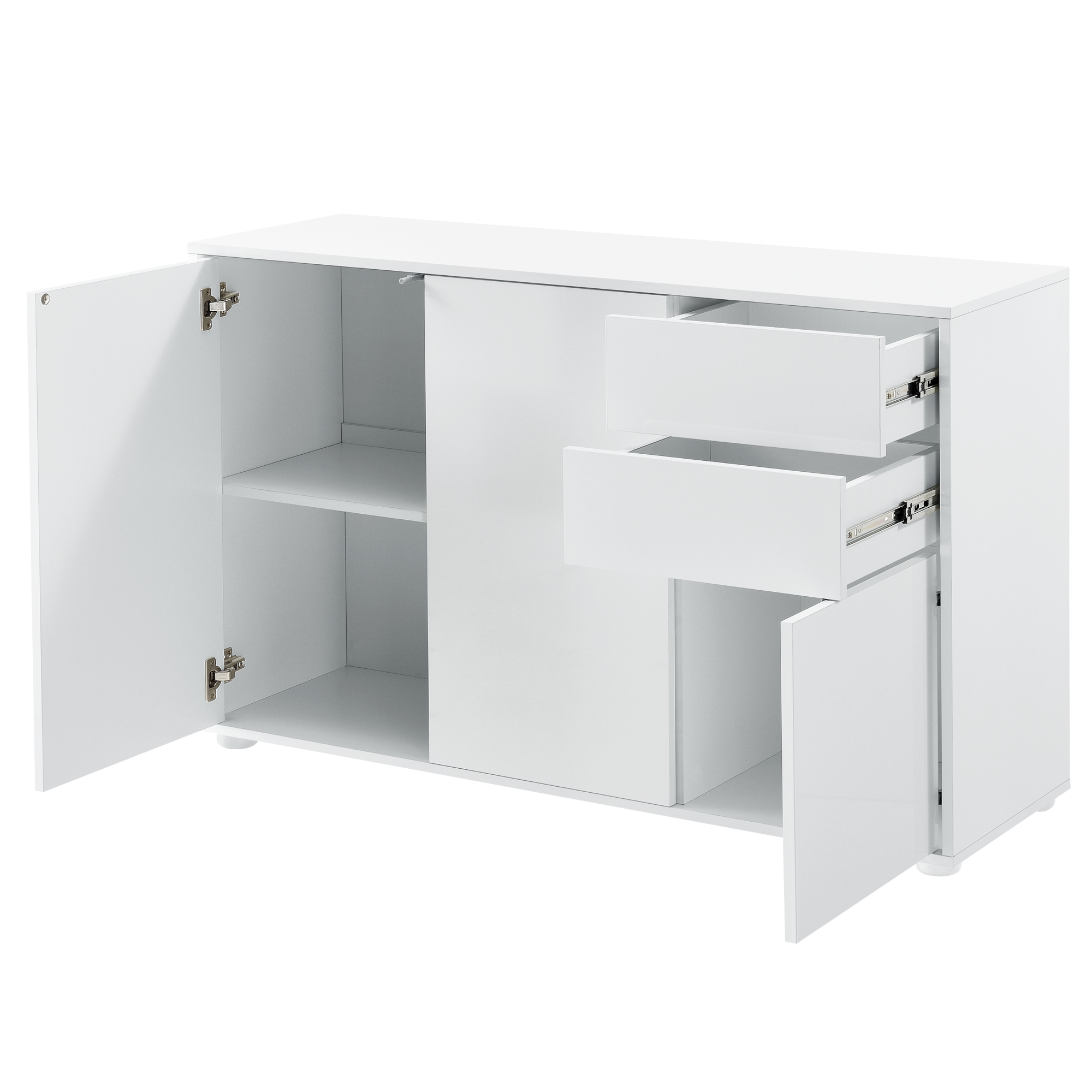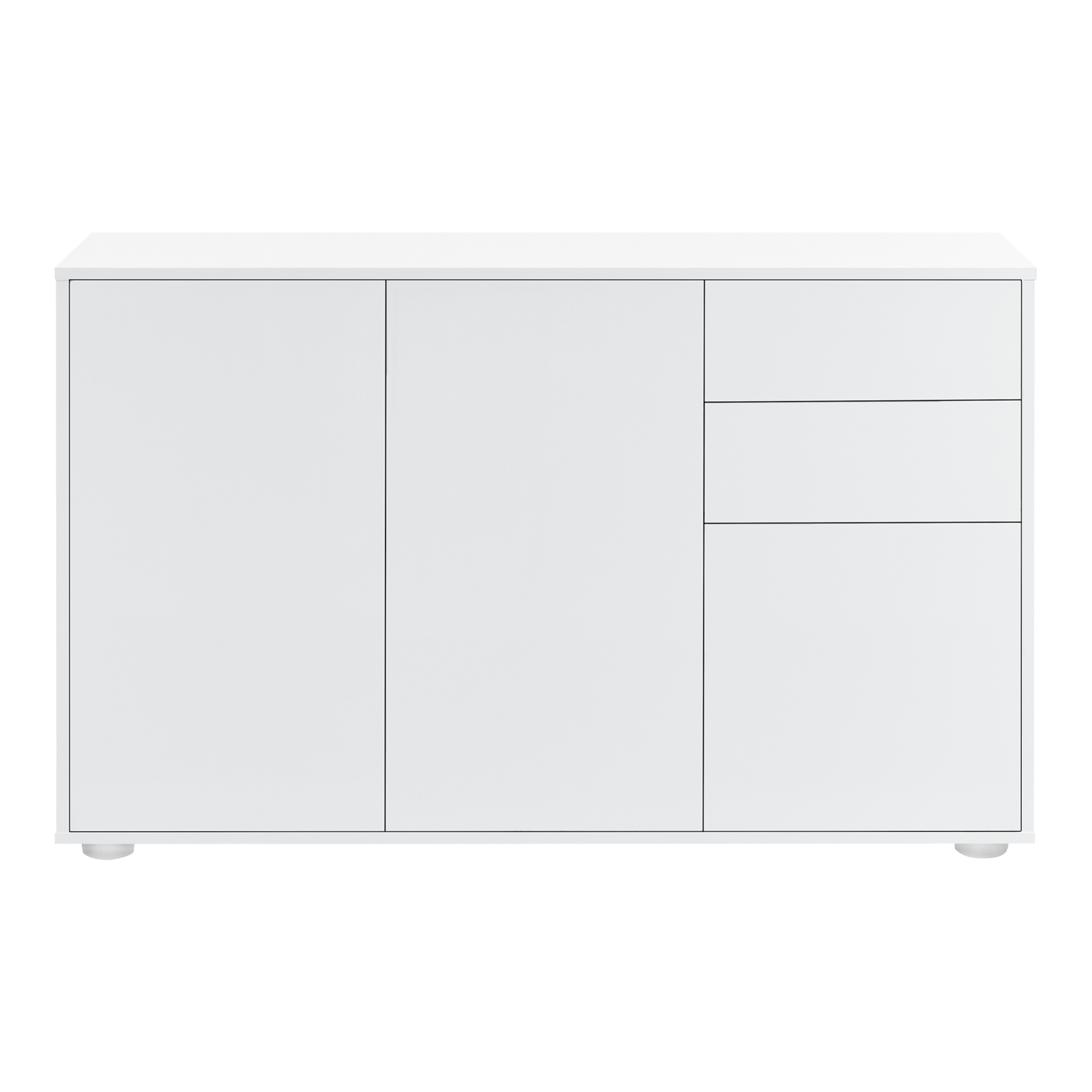 Comoda Paarl WH cu 3 usi si 2 sertare alb extra lucios [en.casa] HausGarden Leisure