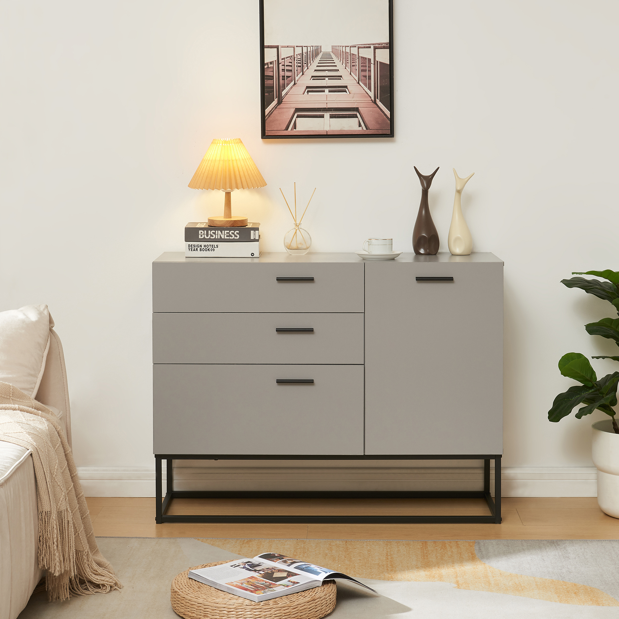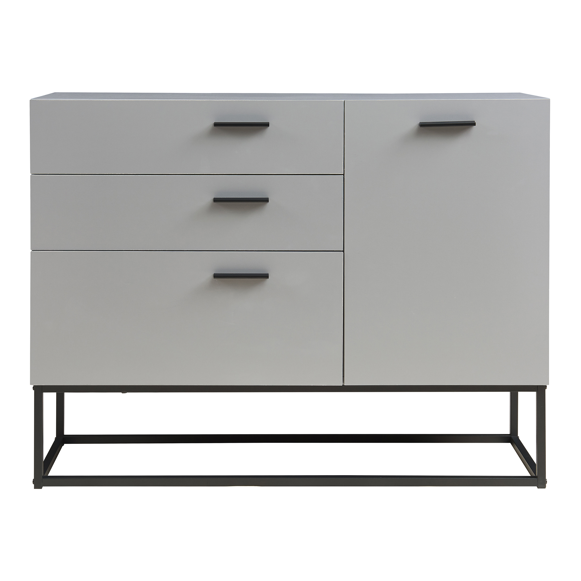 Comoda sideboard Lavangen este o alegere inspirată pentru cei care își doresc un mobilier practic, modern și ușor de integrat în amenajări contemporane. Cu un design elegant în nuanță gri deschis, structură metalică neagră și spații bine compartimentate, această comodă cu sertare și dulap oferă un echilibru excelent între funcționalitate și stil.