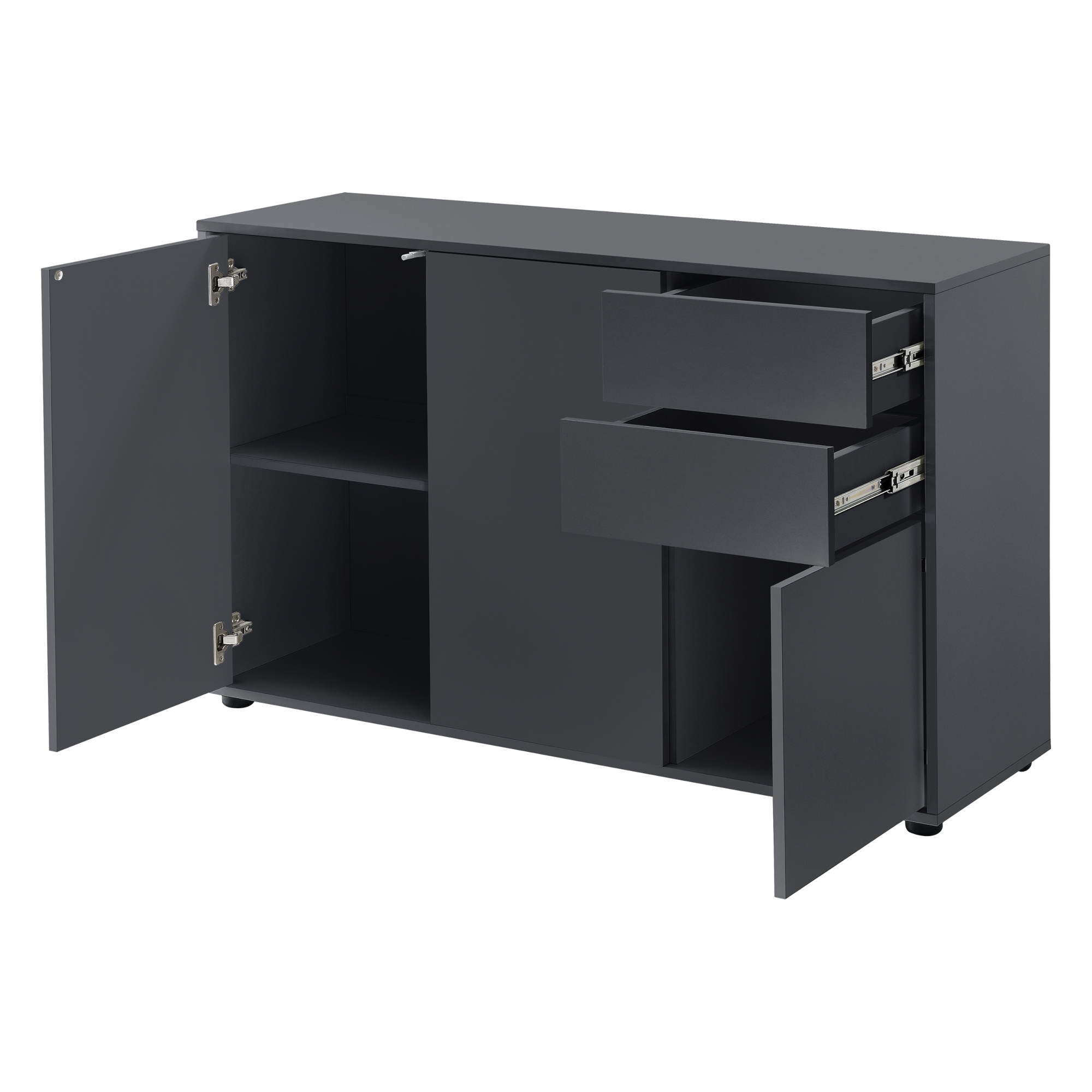 Comodă sideboard Paarl 117 cm cu 2 sertare și 3 uși, gri închis mat