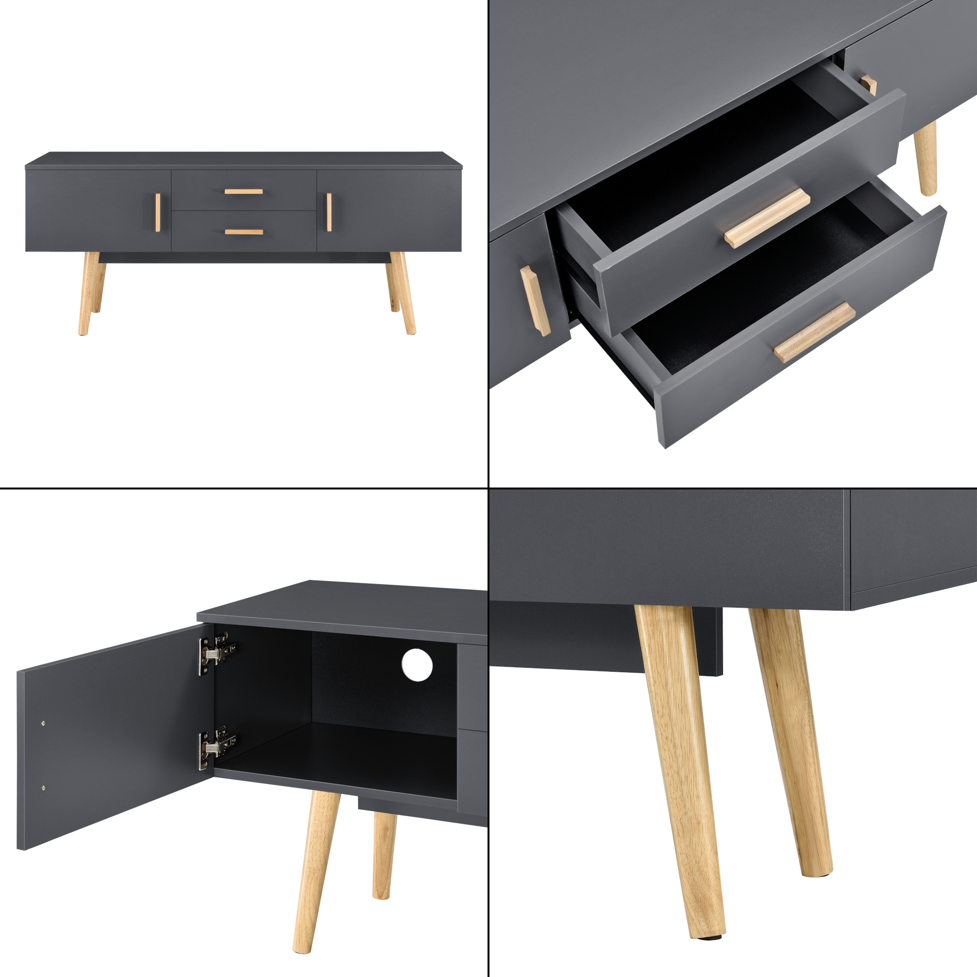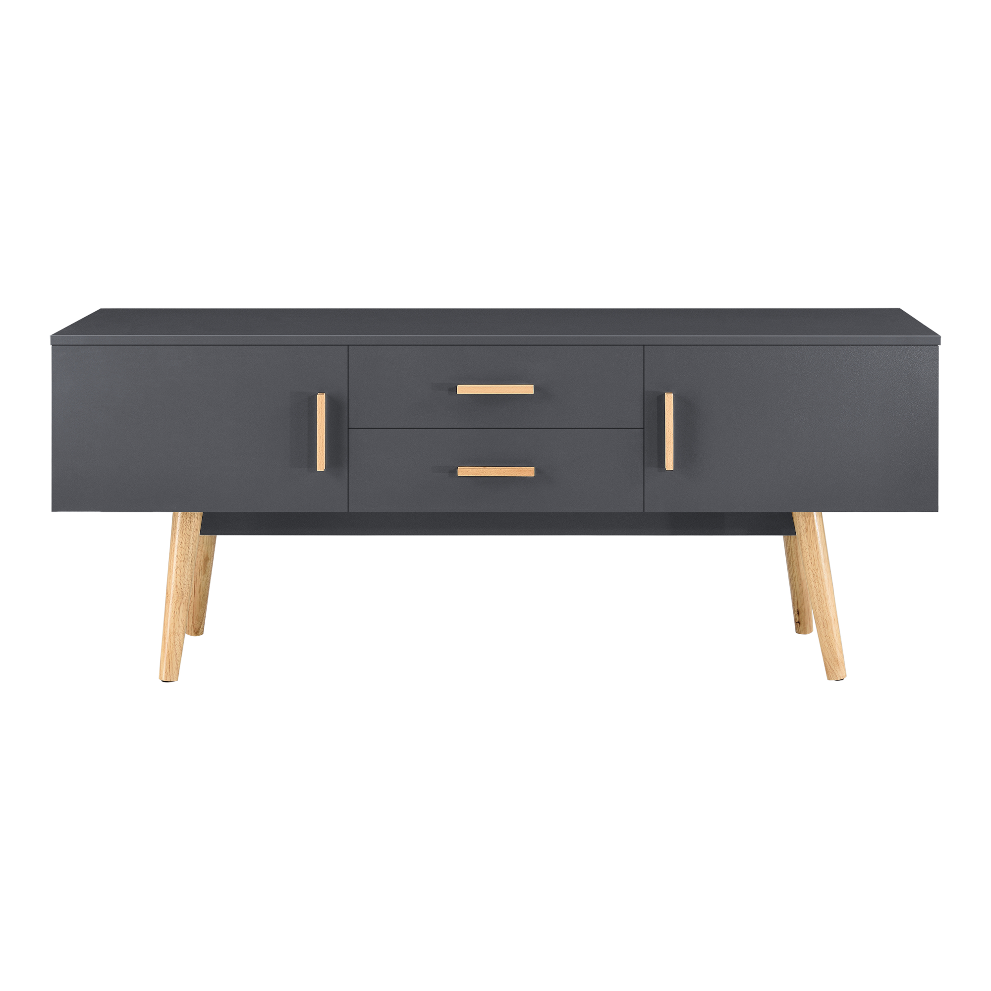Comodă TV Alavus 140x40x56 cm, gri închis, cu 2 uși și 2 sertare