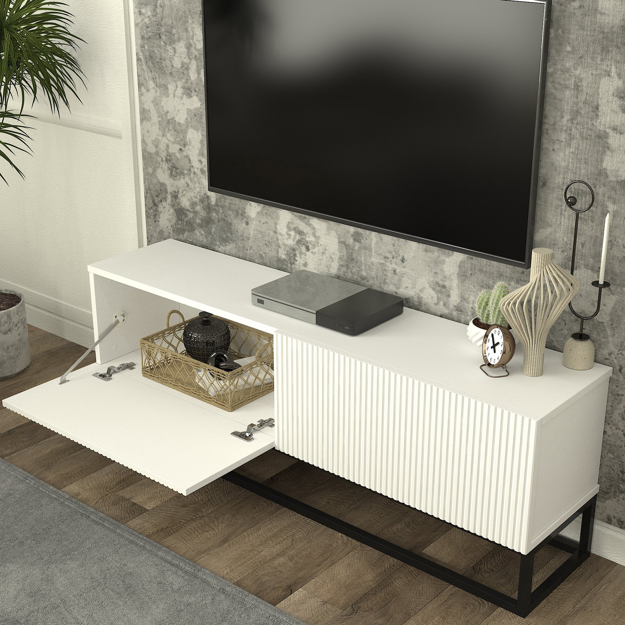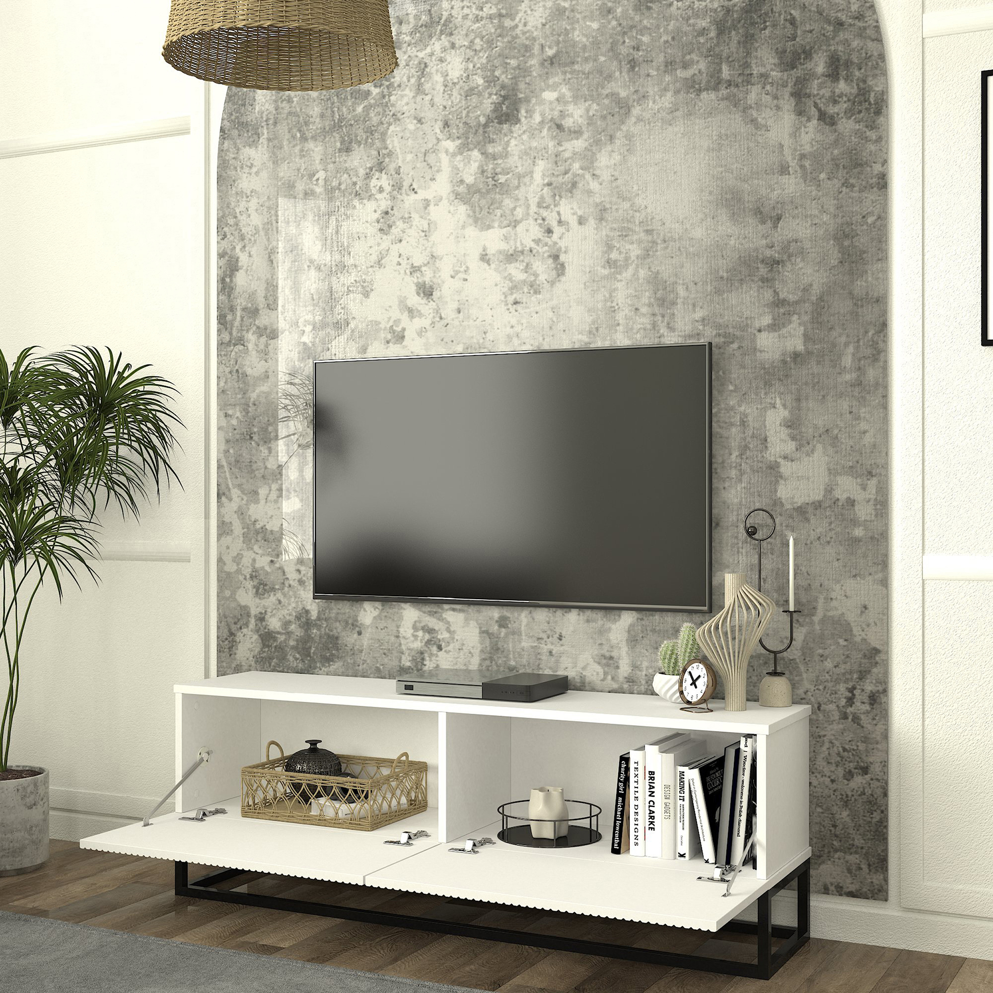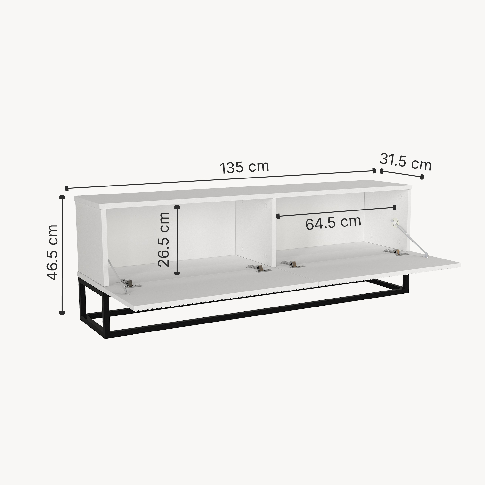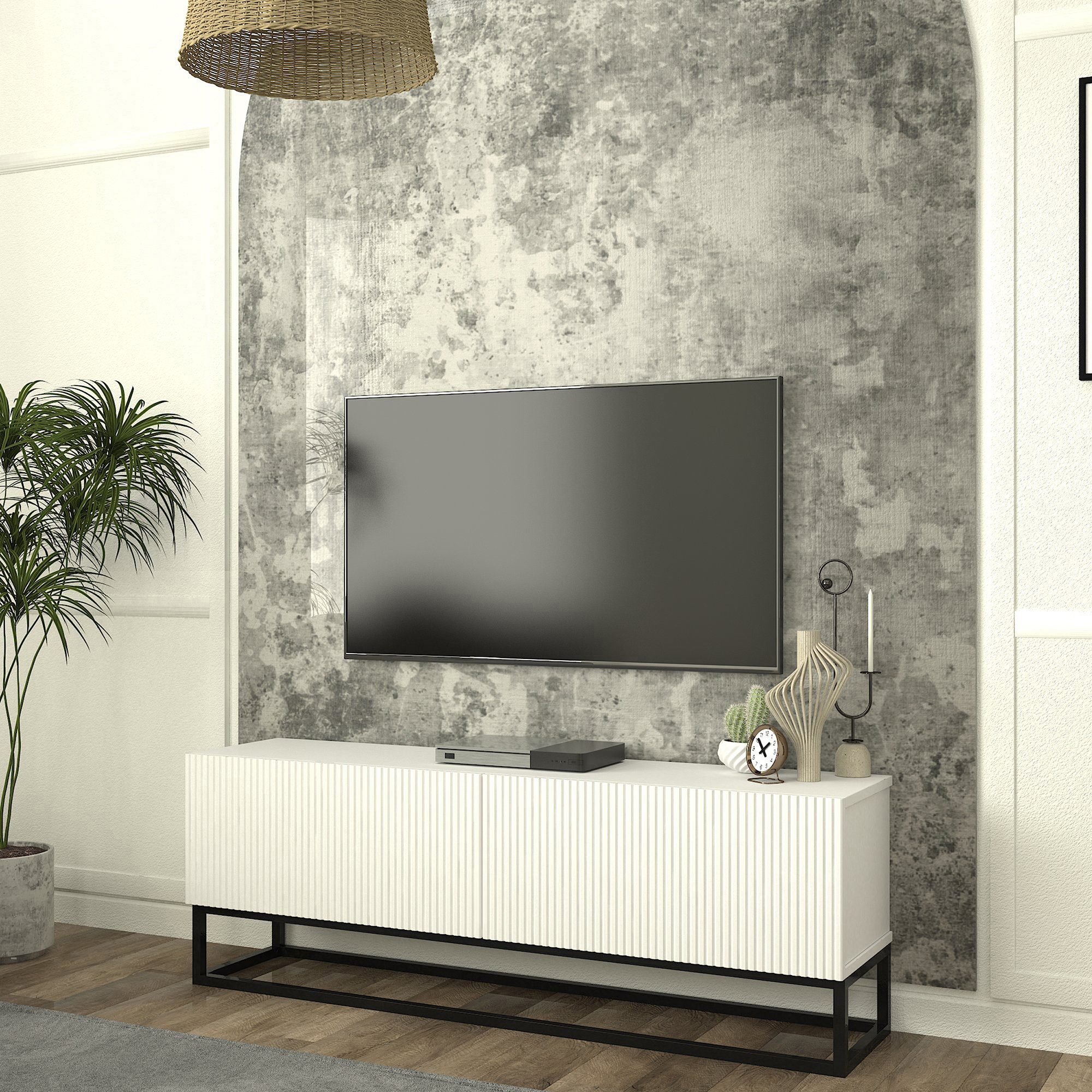 Comodă TV albă 135 cm cu front 3D și cadru metalic Verpsboga