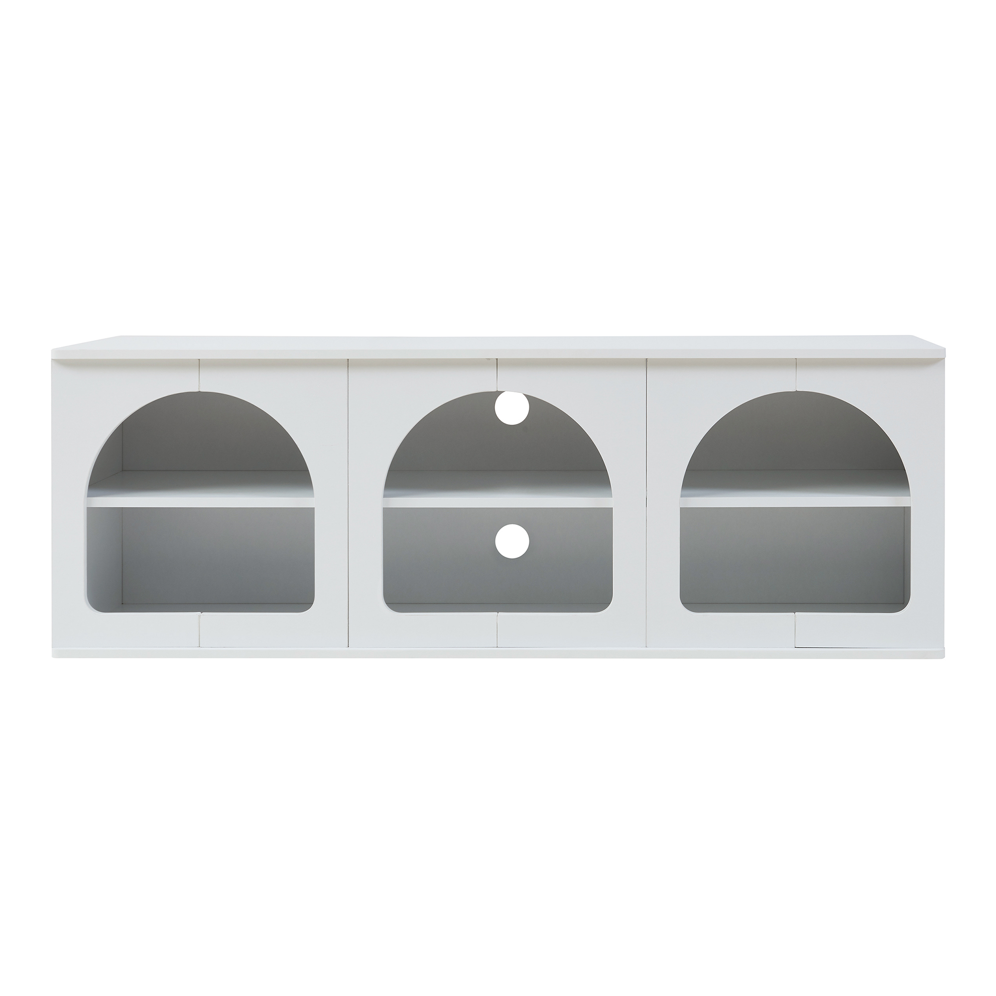 Blatul superior este potrivit pentru amplasarea televizorului, iar cele 6 compartimente deschise sunt ideale pentru consolă, receiver, media box, cărți sau obiecte decorative. Cele două orificii pentru cabluri din partea din spate contribuie la o organizare mai curată, astfel încât zona de entertainment să arate mereu îngrijit.