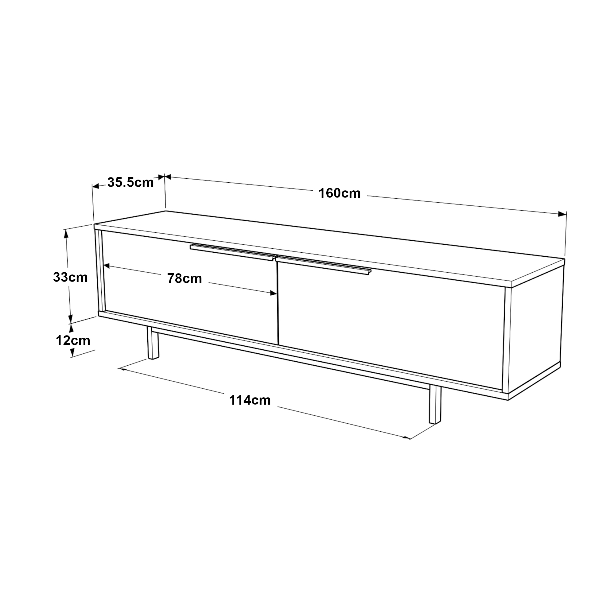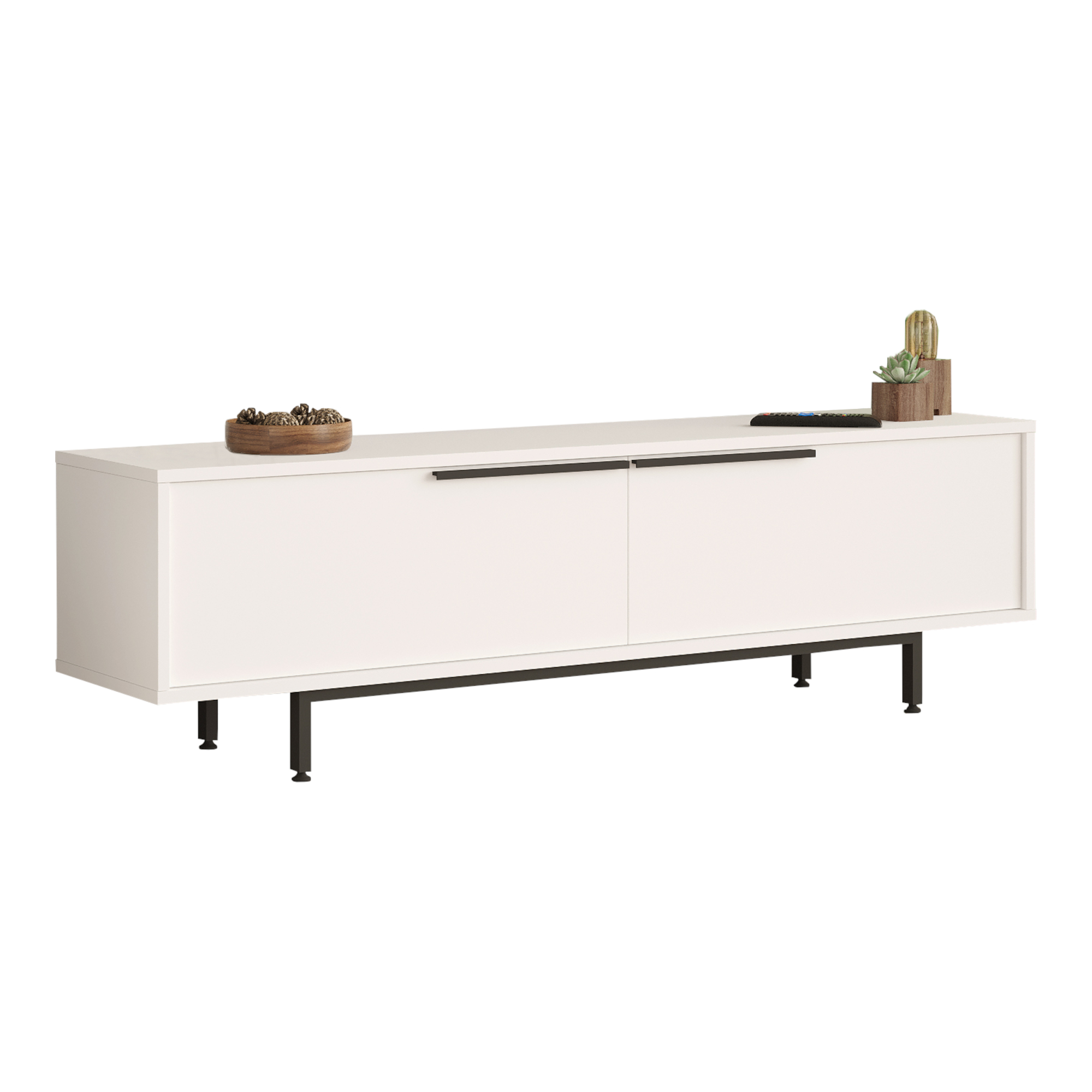 Comodă TV albă Urejovle 160 cm cu 2 uși și picioare metalice