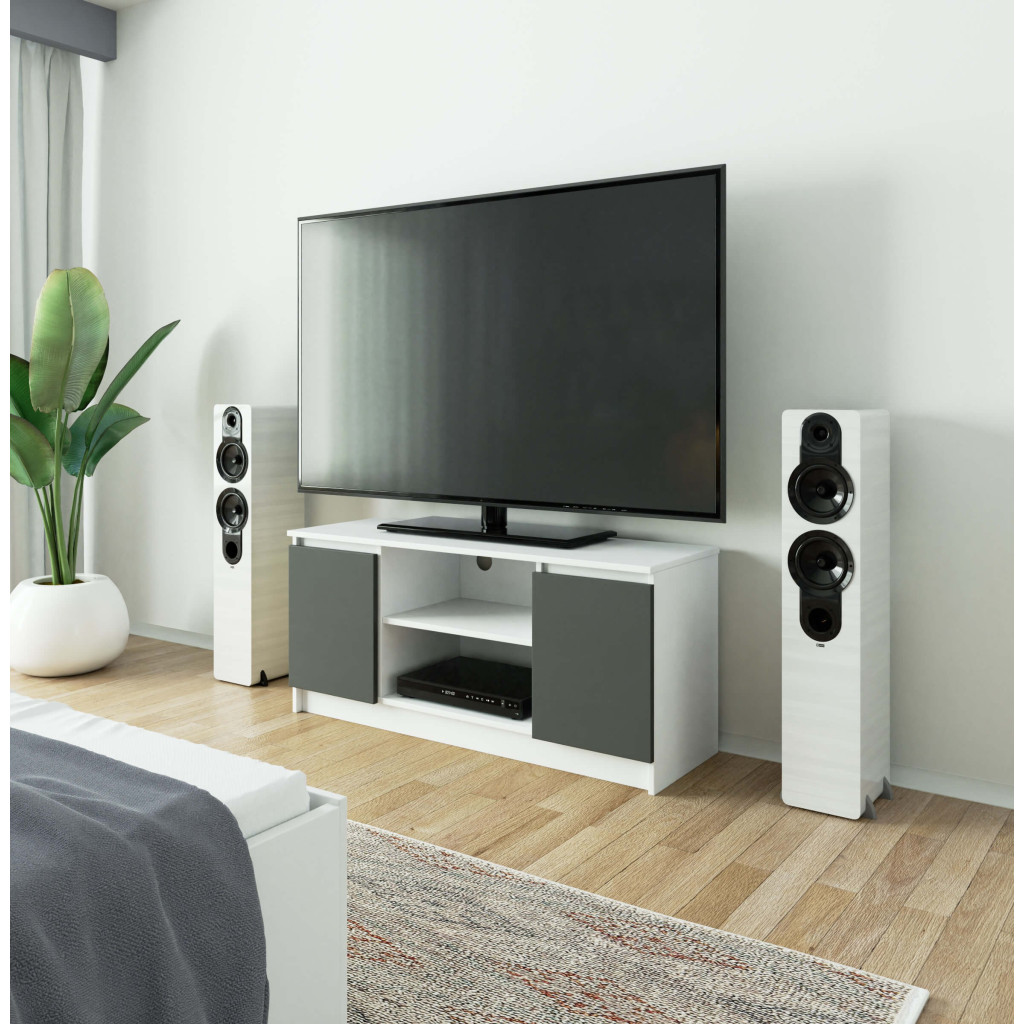 Comoda TV cu 2 usi si o polita, PAL laminat 16 mm, 120x40x55 cm, alb si gri Household NewTrend