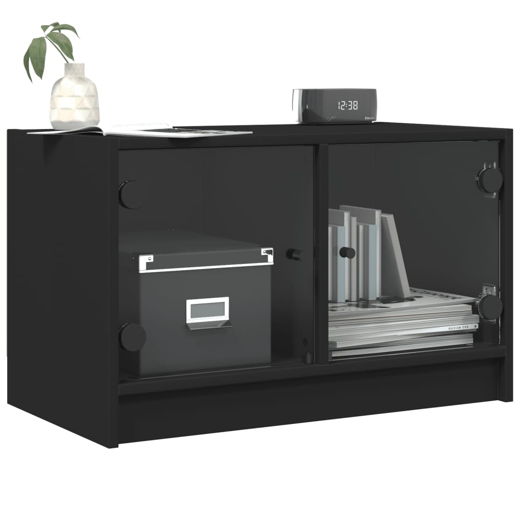 Comodă TV cu uși din sticlă, negru, 68x37x42 cm GartenMobel Dekor