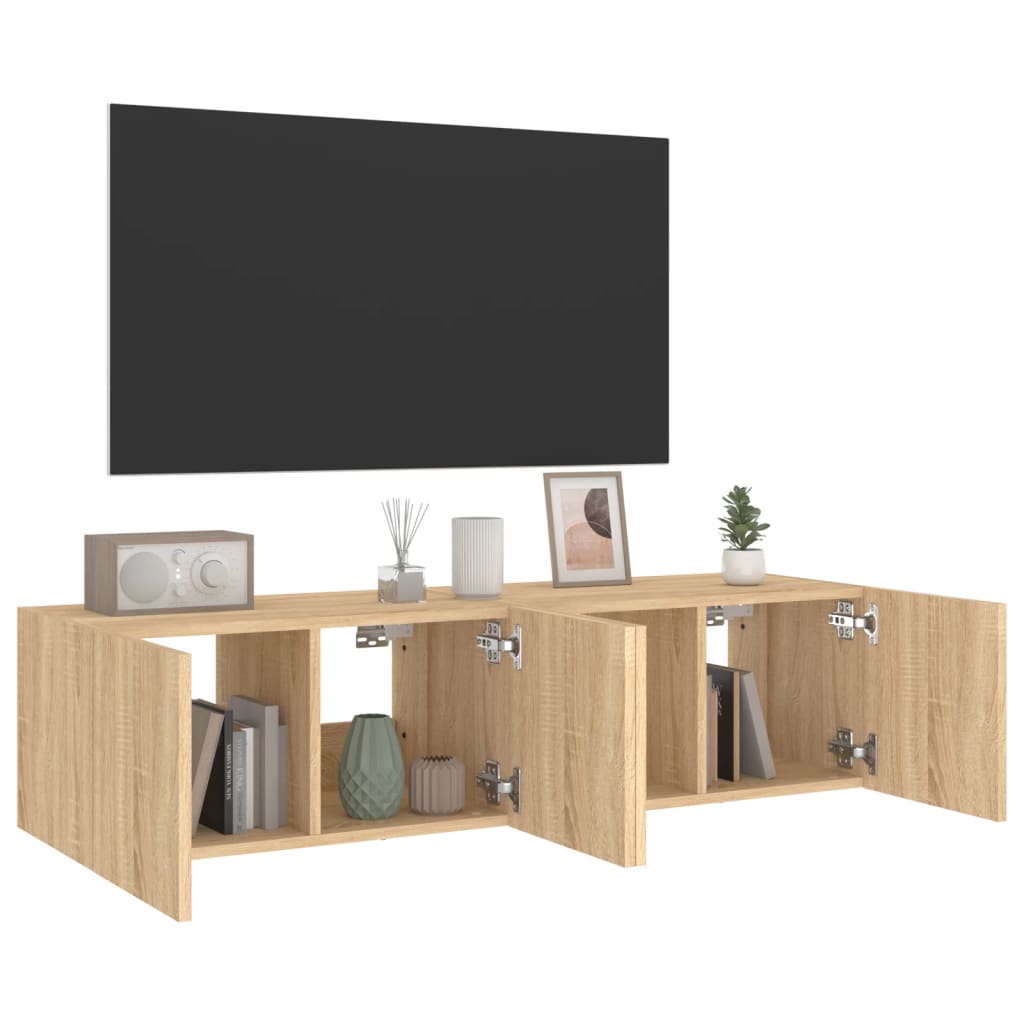 Comodă TV de perete cu LED, 2 buc. stejar sonoma, 60x35x31 cm GartenMobel Dekor