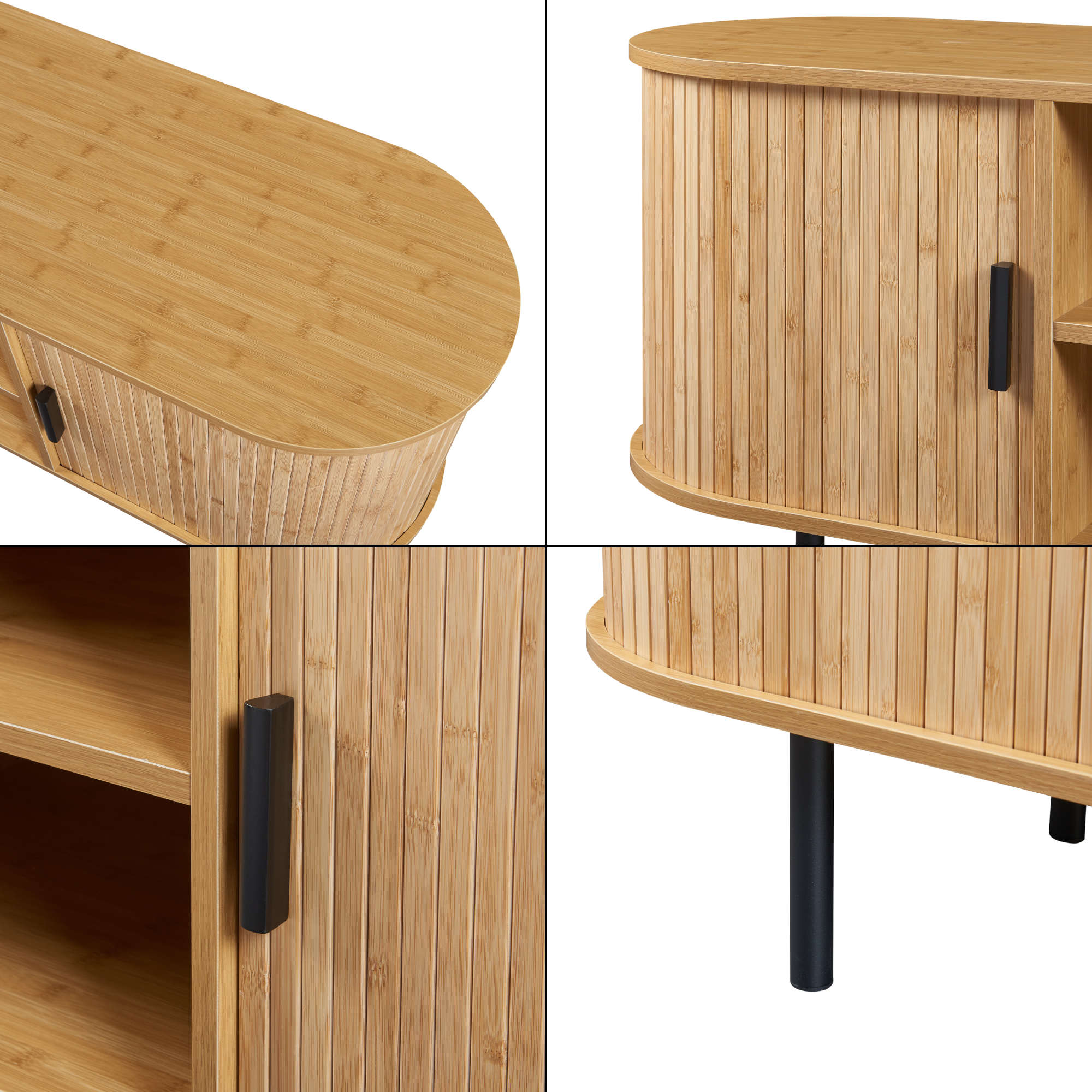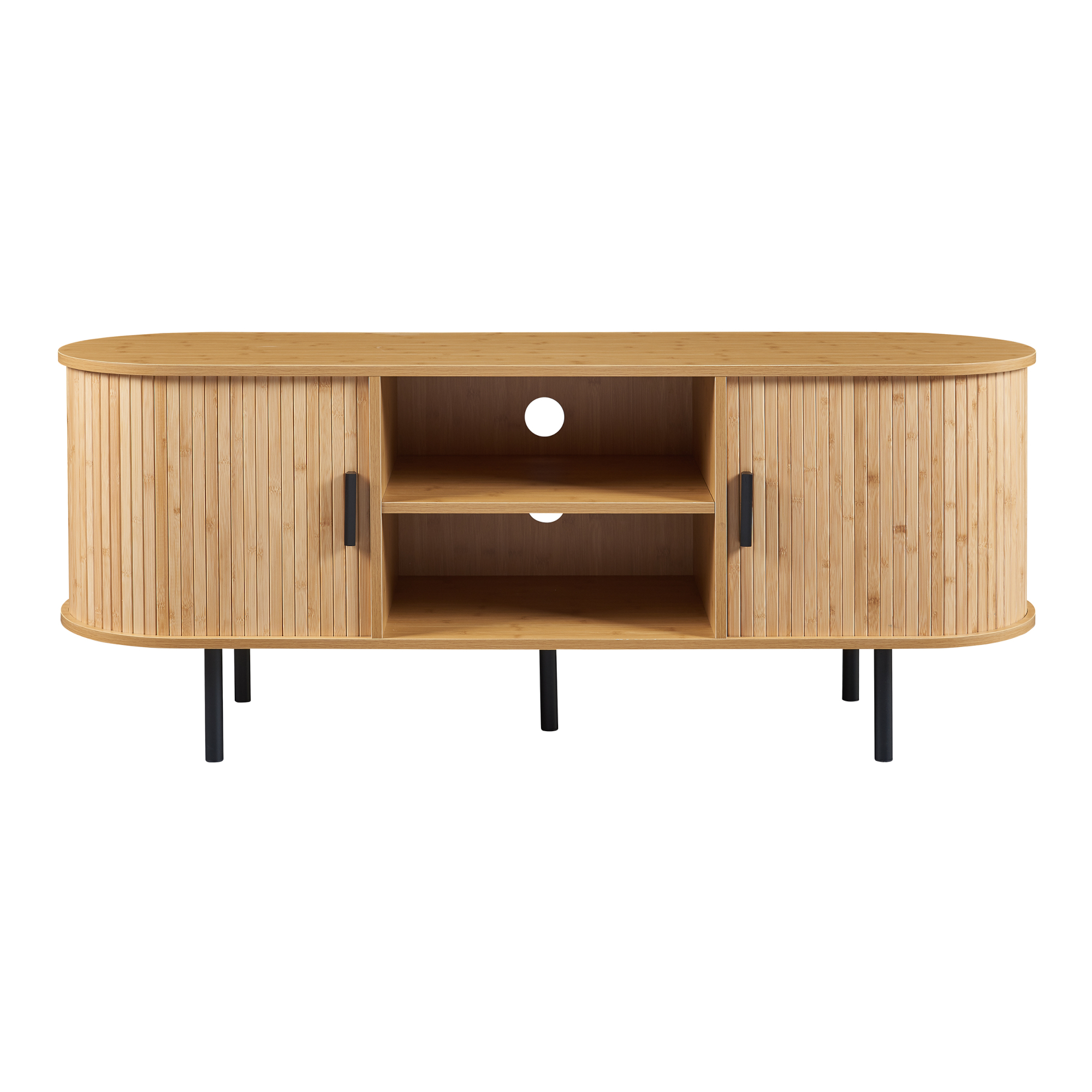 Comoda TV din bambus este alegerea ideală pentru un living modern, aerisit și bine organizat. Cu un design elegant în nuanță naturală, accente negre și linii rotunjite inspirate din stilul scandinav, această comodă TV oferă suficient spațiu pentru televizor, echipamente media și accesorii, păstrând totul ordonat și la îndemână.
