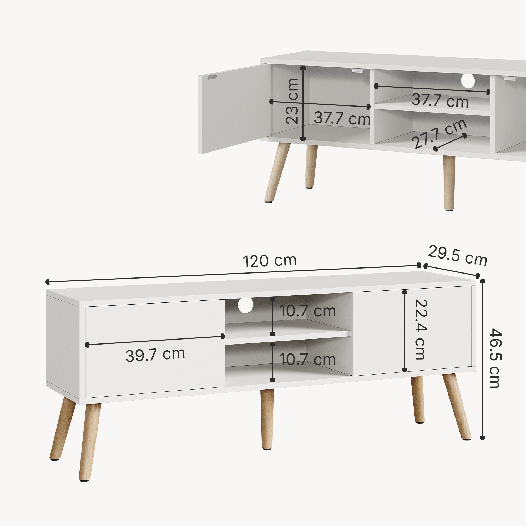 - Dimensiuni interioare dulapuri (L x l x h): 37,7 x 27,7 x 23 cm fiecare