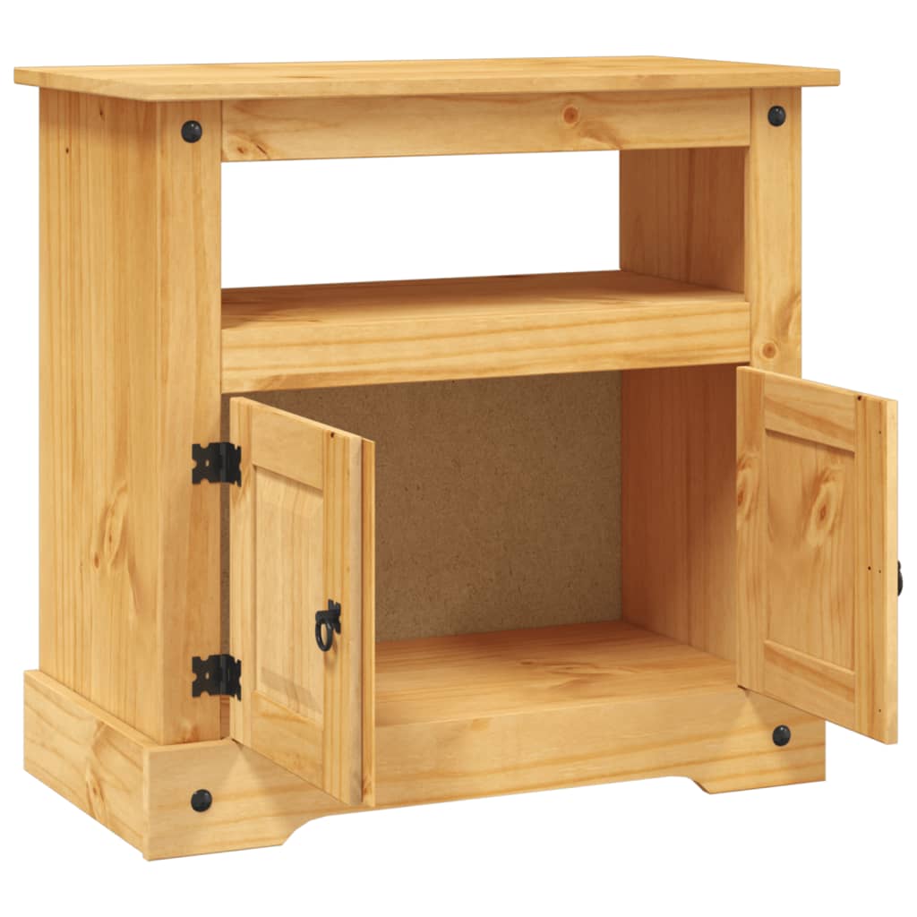 Această comodă TV din lemn de calitate superioară, este o piesă de mobilier în stilul mexican „Corona”. Pinul ceruit emană un farmec rustic, ce va transforma această comodă într-un element de decor atrăgător în sufrageria dvs.