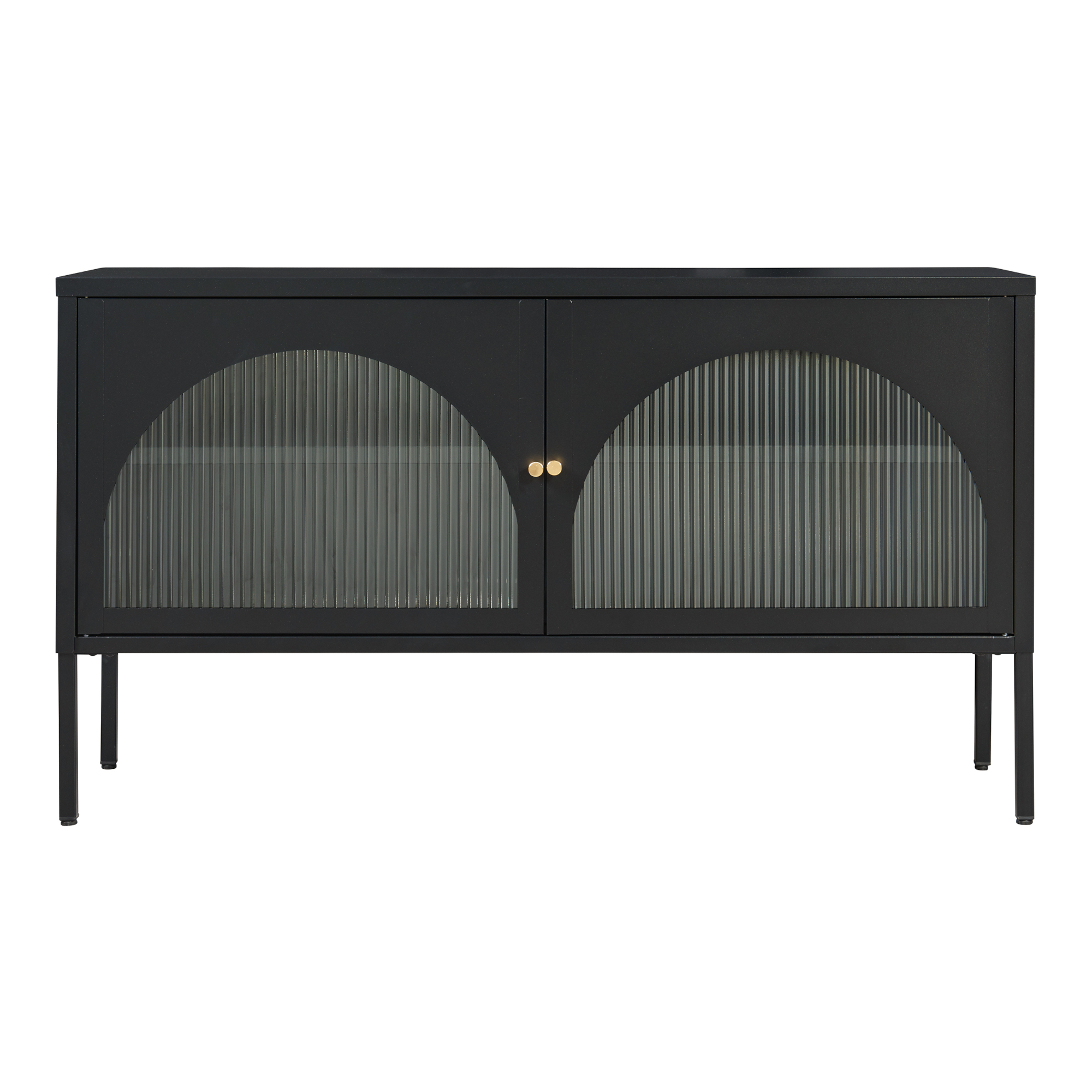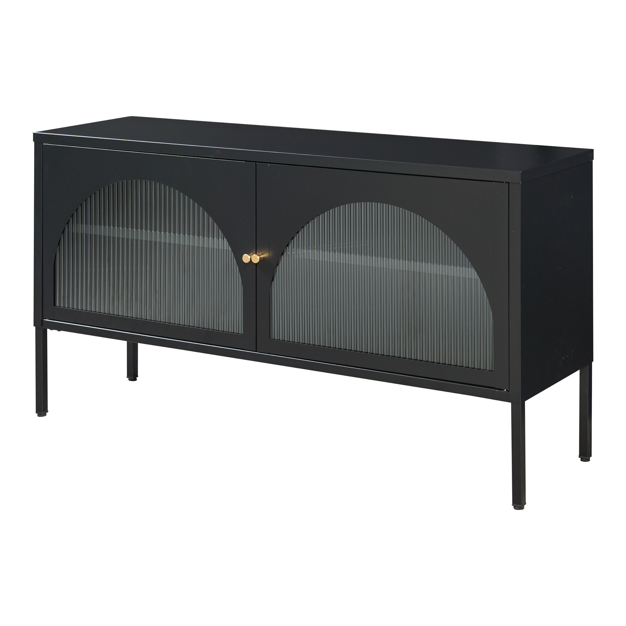 Comodă TV Karlskrona 115x35x64 cm negru mat cu uși din sticlă