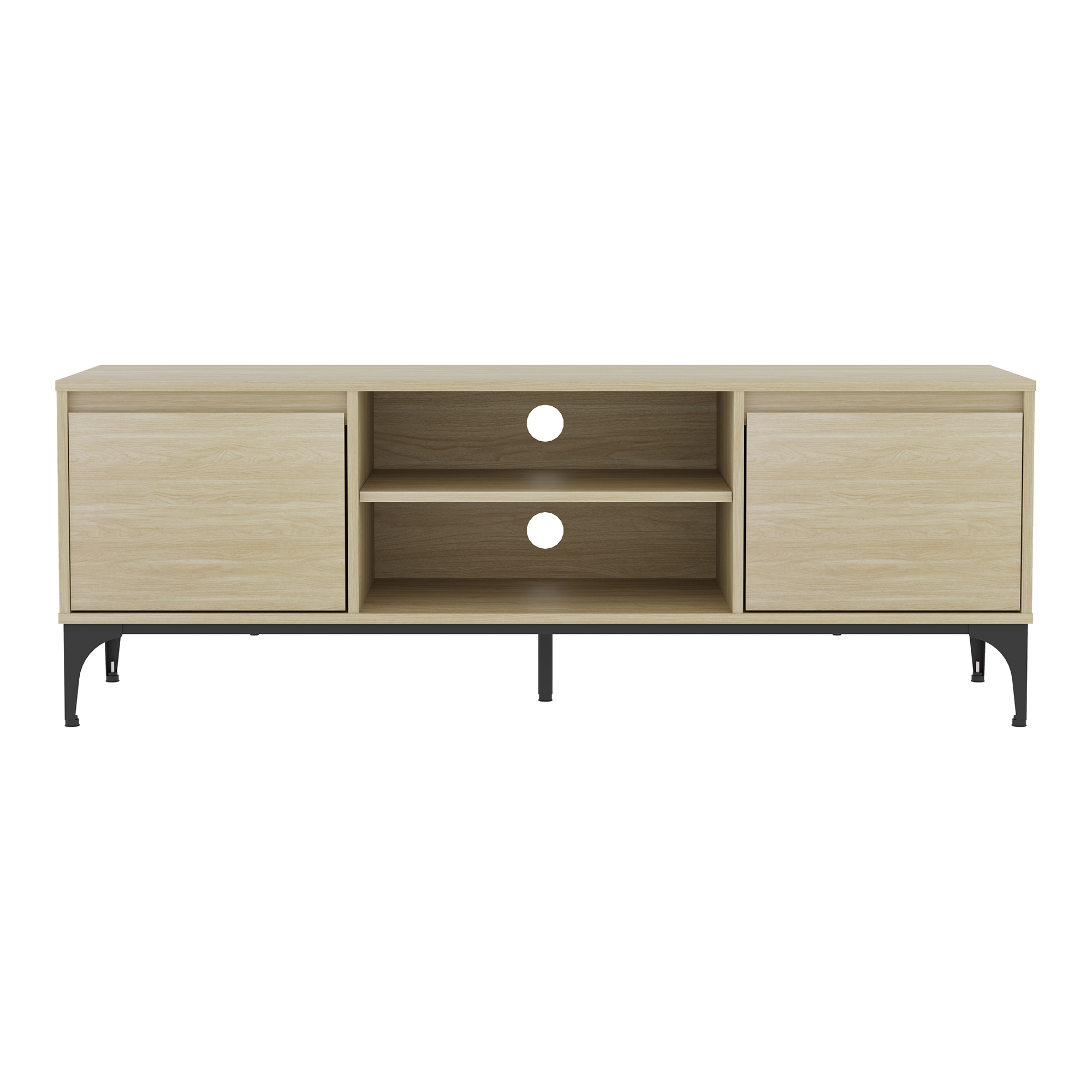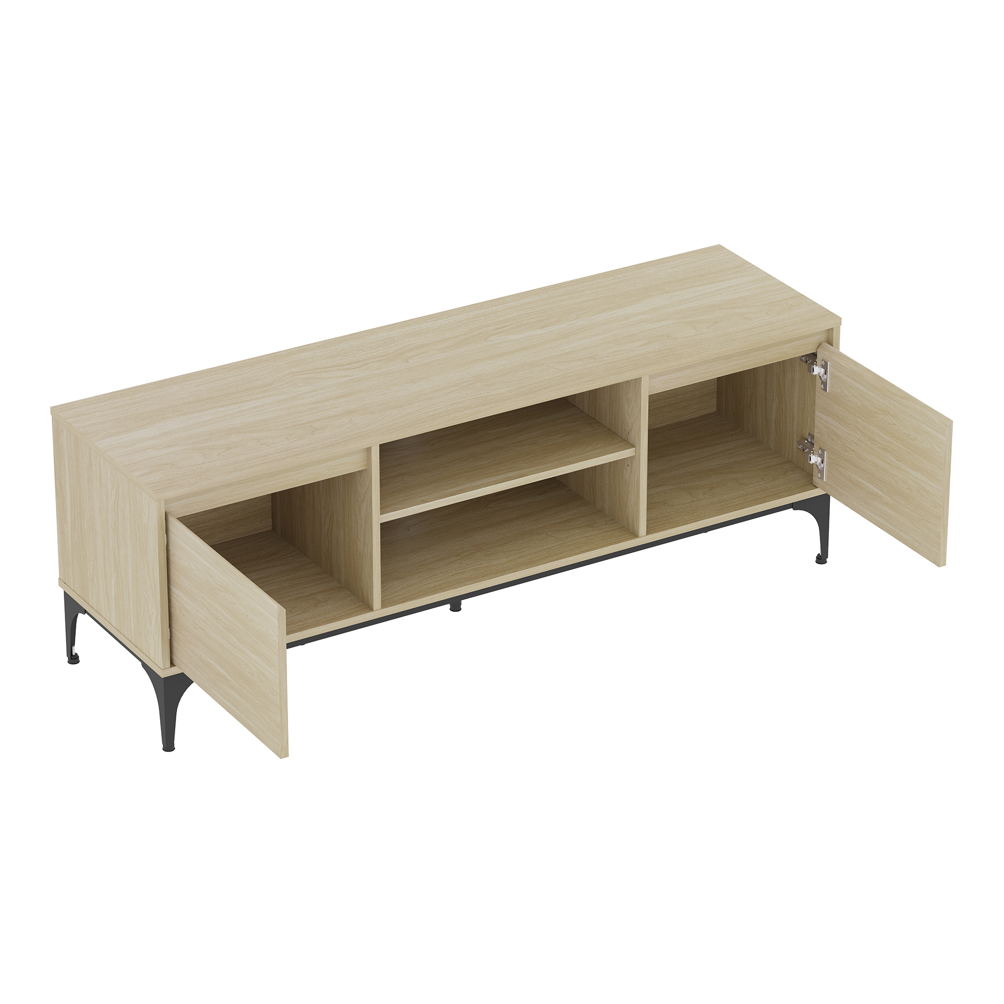 Comodă TV Kistiandi 140x40x50 cm, stejar deschis, cu 2 uși