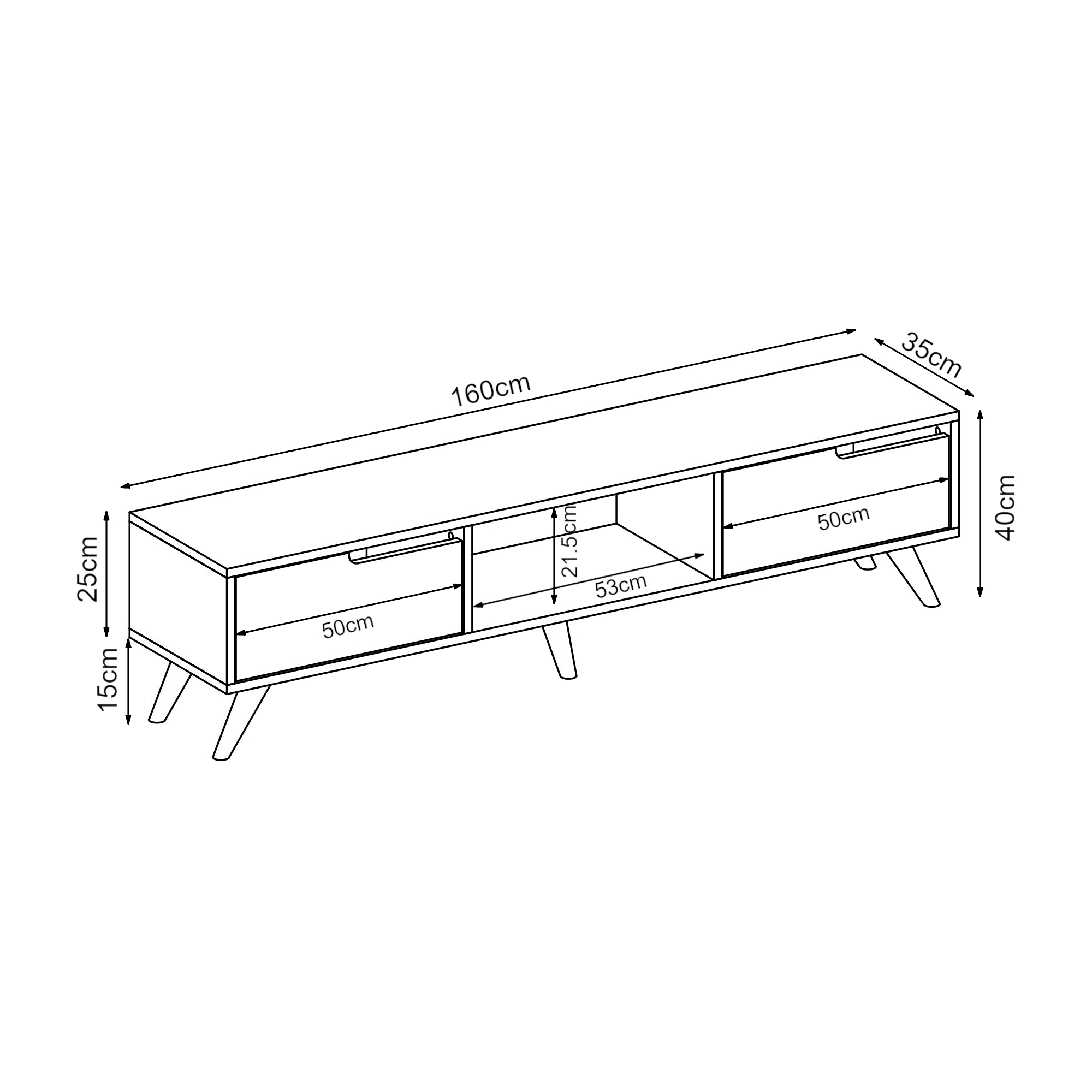 Blatul superior este potrivit pentru amplasarea televizorului, iar compartimentul deschis din mijloc este ideal pentru consolă, DVD player sau receiver. În plus, spatele deschis permite o organizare ușoară a cablurilor, pentru un aspect ordonat și aerisit.
