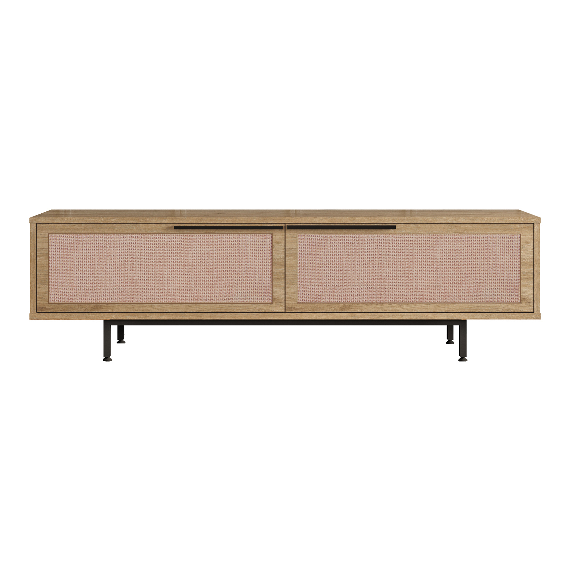 Comodă TV Kvænangen cu 2 uși, aspect stejar și rattan, 160 cm