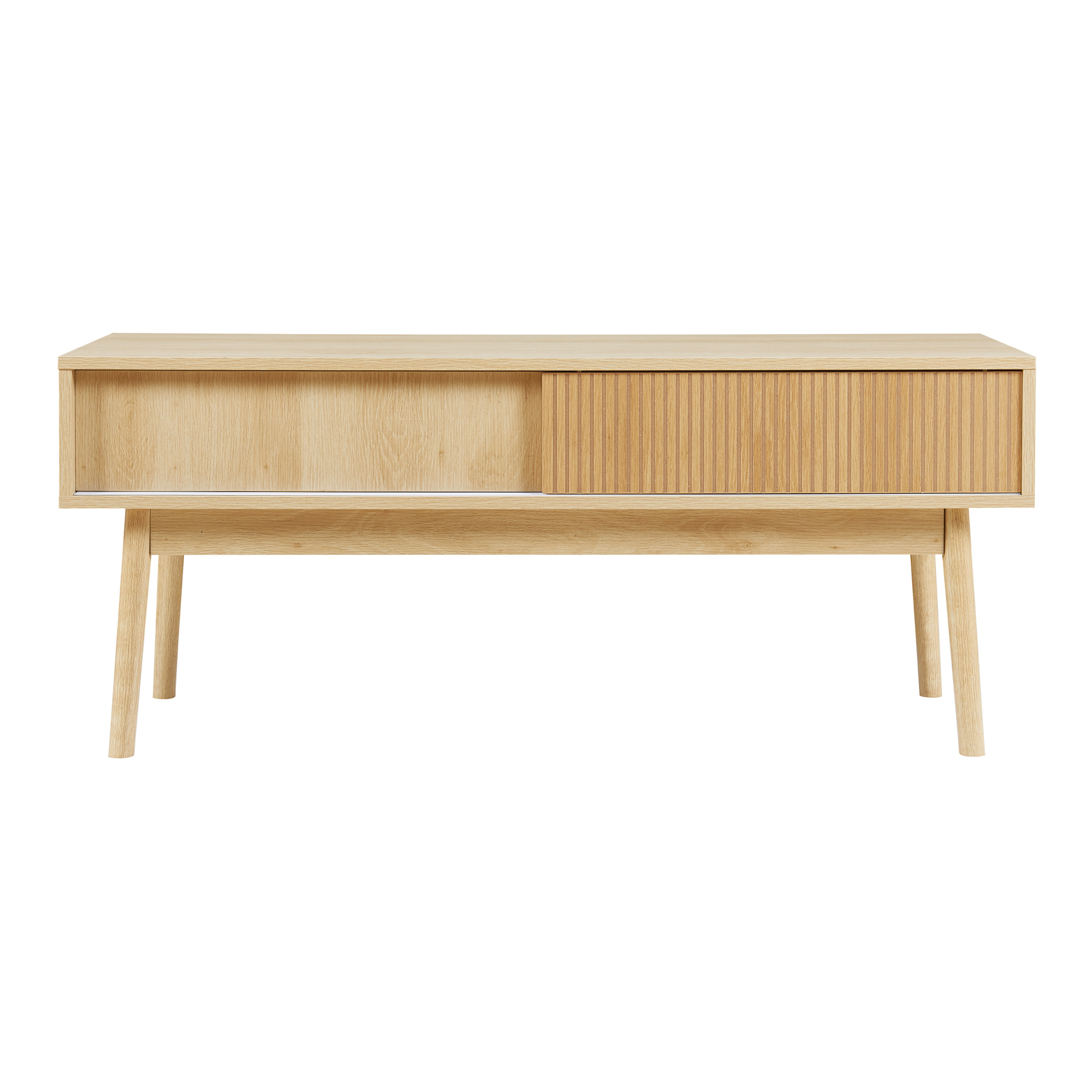 Comodă TV Landskrona 115x40x48 cm cu 2 uși glisante, aspect stejar
