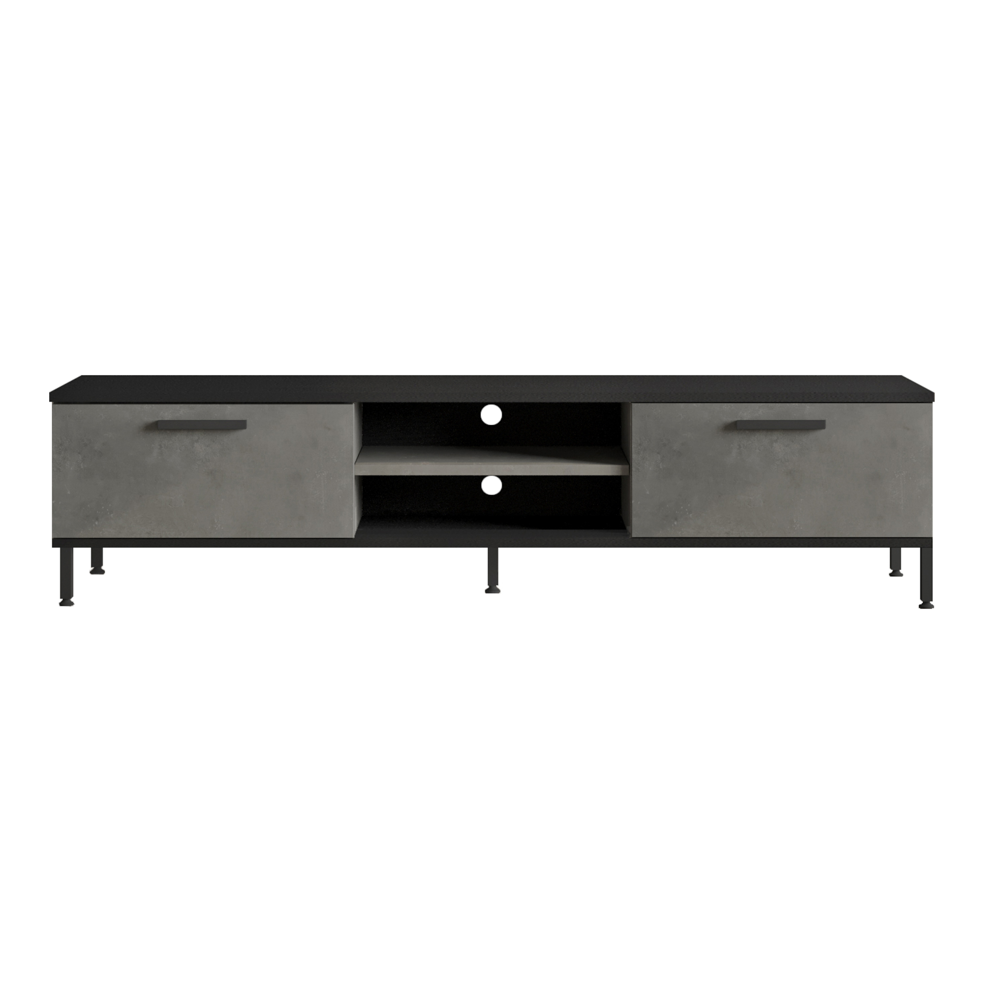 Comoda TV Lempaala 39x160x35cm cu 2 rafturi efect beton/negru [en.casa] HausGarden Leisure