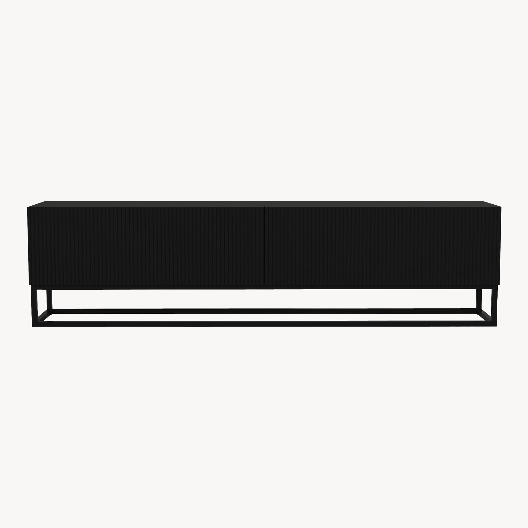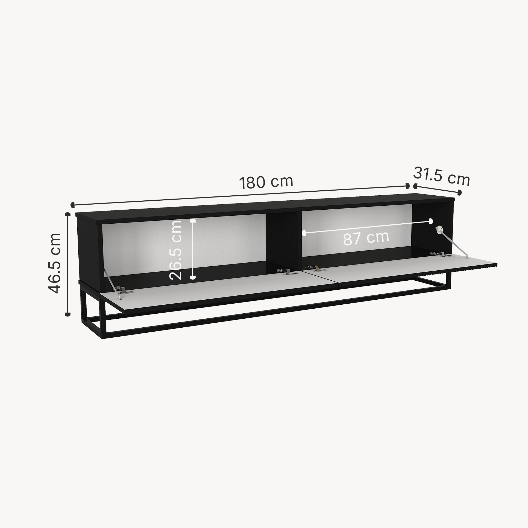Comodă TV neagră 180 cm cu front 3D și cadru metalic Verpsboga
