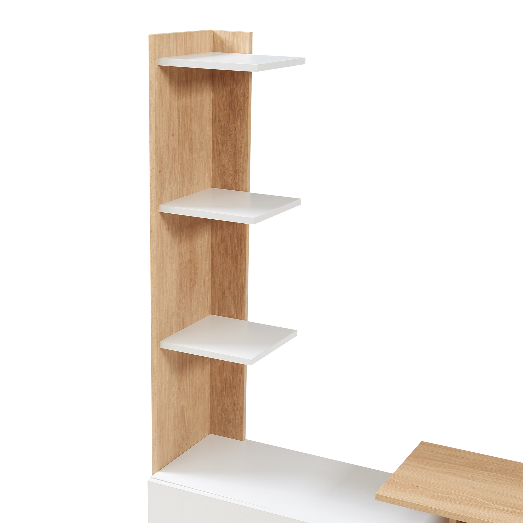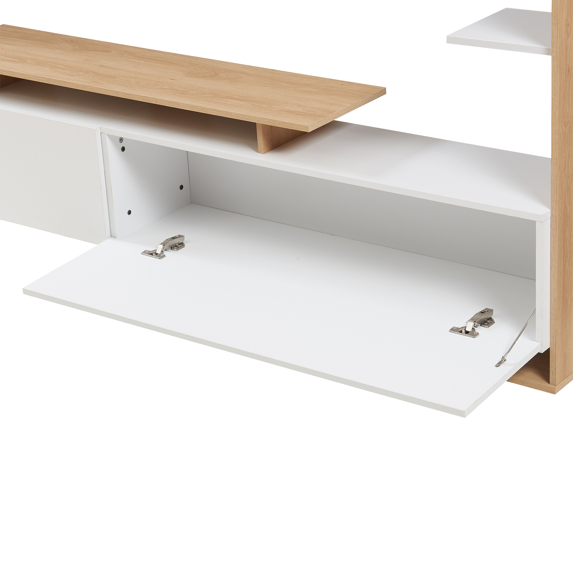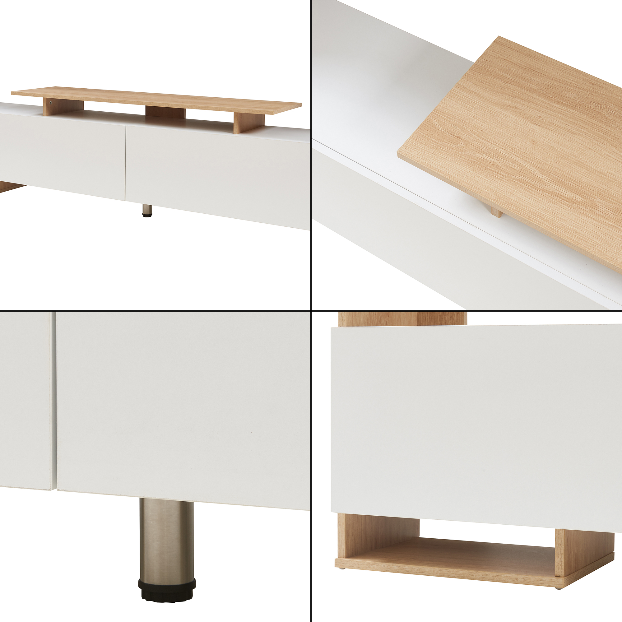 Comodă TV Rauki cu rafturi laterale, alb și stejar, 233x31x141 cm