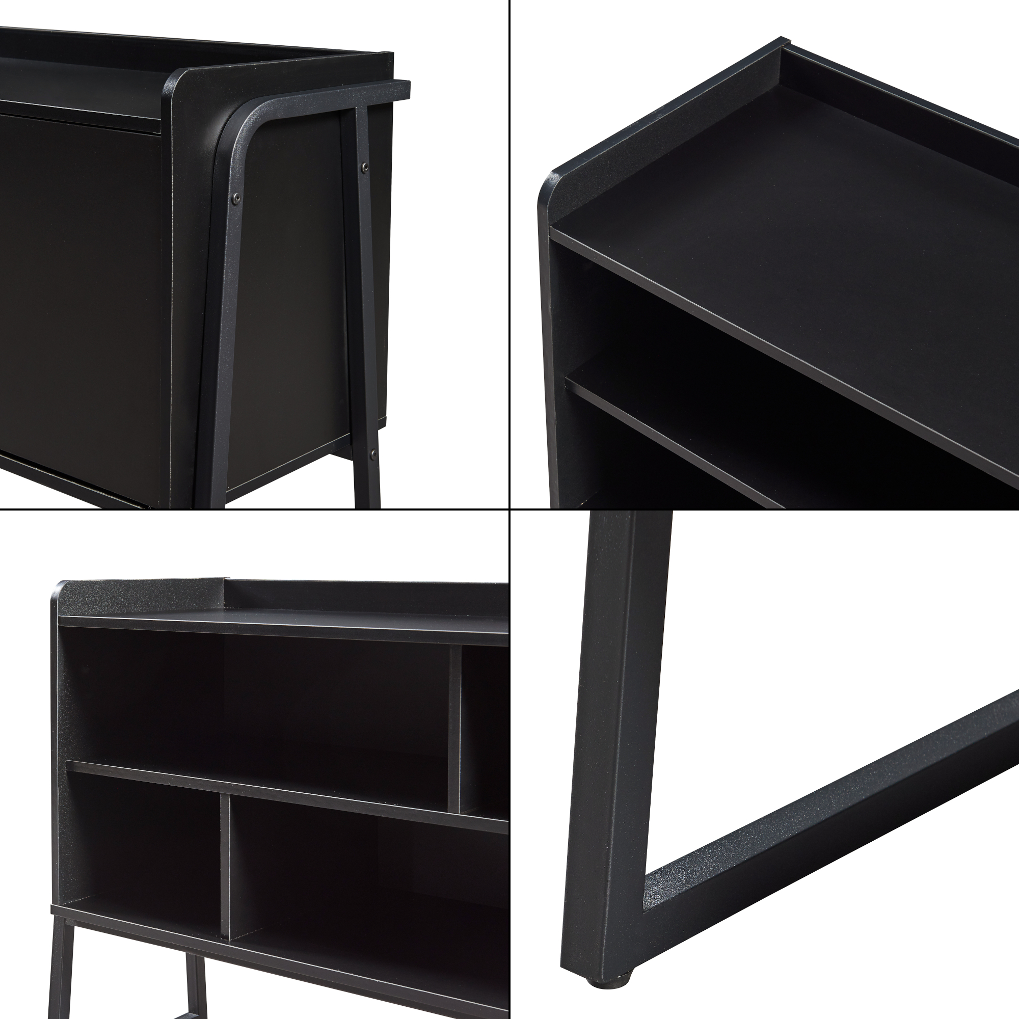 Comodă TV Storfjord 120x33,5x63 cm neagră, cu rafturi și dulap