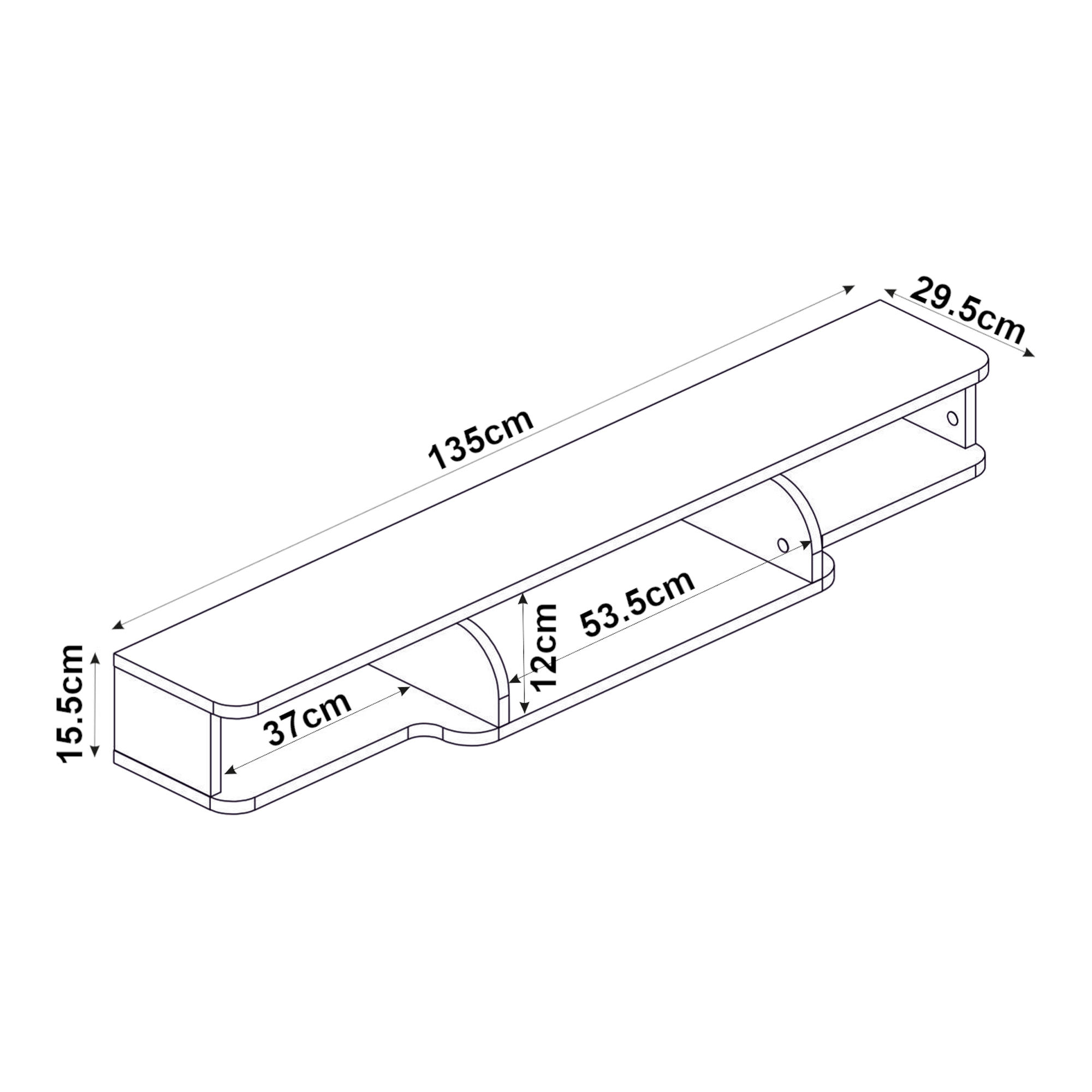- Dimensiuni totale (L x l x h): 135 x 29,5 x 15,5 cm