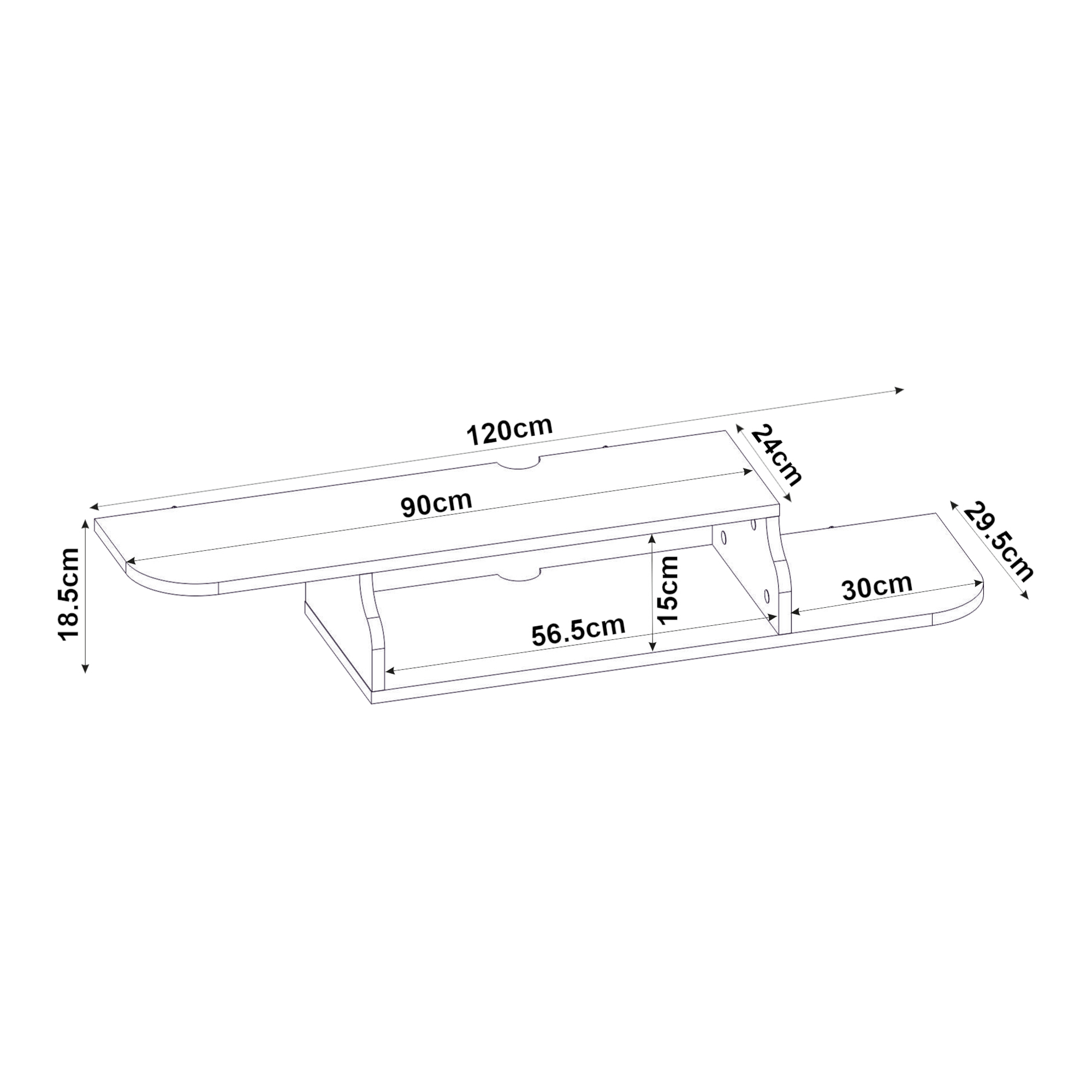 - Dimensiuni poliță TV: 90 x 24 cm